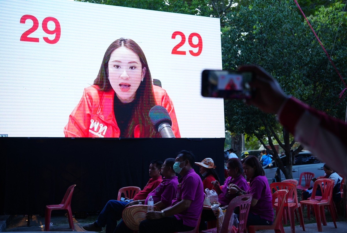น.ส.แพทองธาร กล่าวปราศรัยผ่านระบบวิดีโอคอลถึงพี่น้องชาวสุโขทัย กล่าวว่า จ.สุโขทัย สมัยรัฐบาล ดร.ทักษิณ ชินวัตร เคยเป็นจังหวัดนำร่องในโครงการแปลงสินทรัพย์ให้เป็นทุน และสมัยรัฐบาล น.ส.ยิ่งลักษณ์ ชินวัตร ก็มีแผนให้รถไฟฟ้าความเร็วสูงมาผ่านสุโขทัย เพื่อส่งเสริมการท่องเที่ยวและเศรษฐกิจ แต่ผ่านไป 9 ปีหลังรัฐประหาร พี่น้องเกษตรกรที่นี่ยังยากจน เป็นเพราะพี่น้องที่นี่ปลูกข้าวเป็นอาชีพหลัก แต่กลับไม่มีที่ดินของตนเอง หลายรายมีปัญหาเรื่องเอกสารสิทธิ ถ้าพรรคเพื่อไทยเป็นรัฐบาล จะแก้ไขปัญหาเรื่องเอกสารสิทธิทำกิน เพื่อให้พี่น้องได้มีที่ดิน รวมถึงผลักดันให้นำที่ดินของรัฐที่ไม่ได้ใช้ประโยชน์จำนวนมาก มาจัดให้เป็นที่ดินทำกิน เพื่อเกิดประโยชน์ทางเศรษฐกิจ รวมถึงจะนำโครงการแปลงสินทรัพย์เป็นทุนกลับมาสานต่อและทำให้ดีขึ้น เพื่อให้พี่น้องได้ประโยชน์