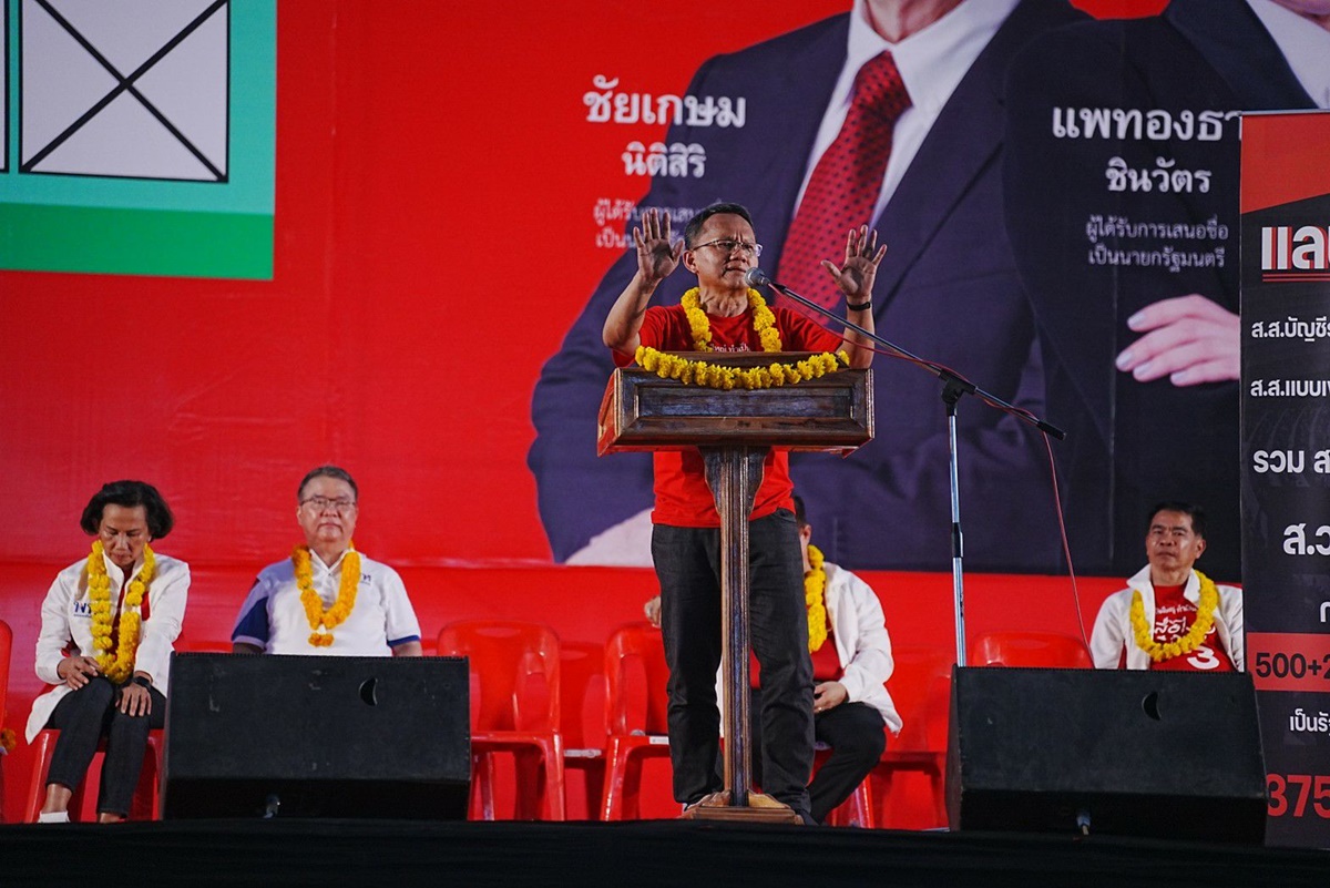 “14 พฤษภาคมนี้ เข้าคูหากาพรรคเพื่อไทยให้แลนด์สไลด์ แล้วหลักศิลาจารึกของคนสุโขทัยจะเขียนว่า กูหลุดพ้นหนี้แล้ว กูได้ 10,000 บาท และครอบครัวไหนรายได้ไม่ถึง 20,000 บาท รัฐบาลเพื่อไทยจะเติมให้ถึง 20,000 บาททุกเดือน จนกว่าจะมีรายได้ถึง 20,000 บาท พักหนี้เกษตรกรทั้งต้นทั้งดอก 3 ปี ทุกนโยบายทำได้จริง” นายณัฐวุฒิ กล่าว. – สำนักข่าวไทย