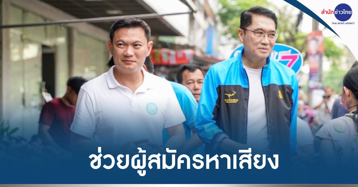 นายองอาจ และดร.เอ้ สุชัชวีร์ ช่วยกันขอคะแนนให้ “อภิมุข ฉันทวานิช” ผู้สมัคร ส.ส.กทม. เขตบางคอแหลม-ยานนาวา เบอร์ 7 และขอคะแนนให้พรรคประชาธิปัตย์ เบอร์ 26 เข้าไปสร้างการเปลี่ยนแปลงต่อไป.-สำนักข่าวไทย