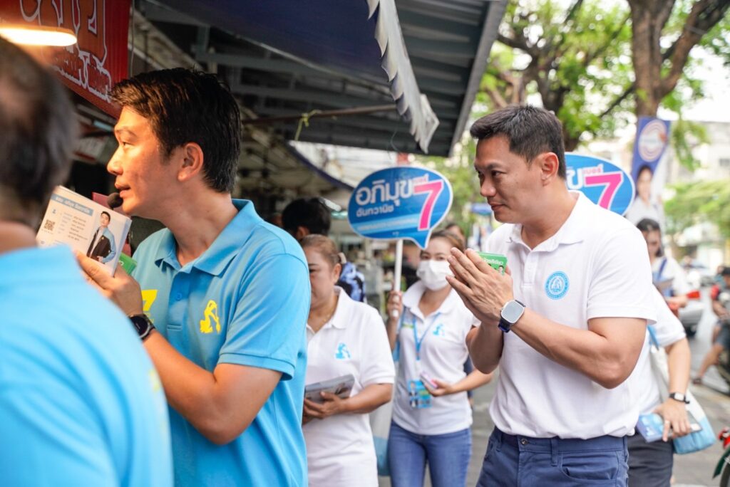 ดร.เอ้ สุชัชวีร์ สุรรณสวัสดิ์ ประธานคณะทำงานการศึกษาทันสมัย พรรคประชาธิปัตย์ นายองอาจ คล้ามไพบูลย์ รองหัวหน้าพรรคประชาธิปัตย์ ได้ร่วมลงพื้นที่ตลาดเช้ารุ่งเจริญ ขอคะแนนเสียงสนับสนุน “ออม อภิมุข ฉันทวานิช” ผู้สมัคร ส.ส.กทม. เขตบางคอแหลม-ยานนาวา เบอร์ 7
