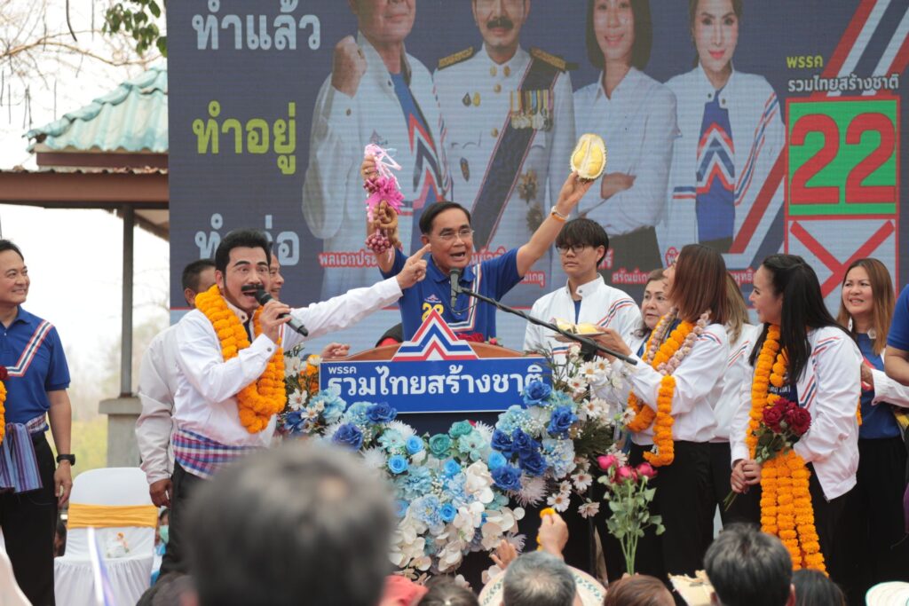 อุตรดิตถ์ 23 เม.ย. – “พล.อ.ประยุทธ์” พร้อมแกนนำรวมไทยสร้างชาติขึ้นเวทีปราศรัย อ.ท่าปลา ถิ่น “ศรัณย์วุฒิ ศรัณย์เกตุ” ขอเสียงสนับสนุนผู้สมัคร ส.ส.รวมไทยสร้างชาติ อ้อนคนอุตรดิตถ์ขอให้เลือกทั้ง 3 เขต เลือกตั้ง เพื่อให้ได้เสียงข้างมากเข้าไปทำงานต่อ ย้ำอีกไม่กี่วันถึงวันเลือกตั้งขอให้ไตร่ตรองให้ดีถ้าเดินผิดจะนำพาประเทศชาติไปในทางที่ผิด