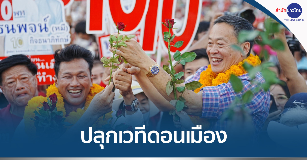 “พรรคเพื่อไทยเห็นถึงความสำคัญของพื้นที่ดอนเมือง พร้อมทำนโยบายให้เป็นจริง แต่นโยบายเหล่านี้จะเป็นไปไม่ได้ ถ้าจุดเริ่มต้น ส.ส.หมี-สุธนพจน์ กิจธนาพิทักษ์ ผู้สมัคร ส.ส. เขตดอนเมือง เบอร์ 10 ไม่ได้รับการเลือกตั้งเข้าสู่สภา ส.ส.หมี เป็นคนหนุ่มรุ่นใหม่ไฟแรง ทำงานลงพื้นที่มาโดยตลอด เราไม่ได้แข่งกับคนอื่น เรามาวันนี้ เรามั่นใจว่าจะได้เป็นแกนนำจัดตั้งรัฐบาล ส.ส.หมีจะเป็นกำลังสำคัญในการขับเคลื่อนนโยบายเข้าสู่สภา ถ้าไม่เลือก ส.ส.หมี ก็น้อยไป 1 เสียง จึงอยากขอคะแนนเสียงจากพี่น้องชาวดอนเมือง ในวันที่ 14 พฤษภาคม ขอให้เลือก ส.ส.หมี เบอร์ 10 เข้าสู่สภา และเลือกพรรคเพื่อไทยเบอร์ 29 กาทั้ง 2 ใบ แลนด์สไลด์เพื่ออนาคตที่ดีกว่าของลูกหลาน” นายเศรษฐากล่าว .-สำนักข่าวไทย
