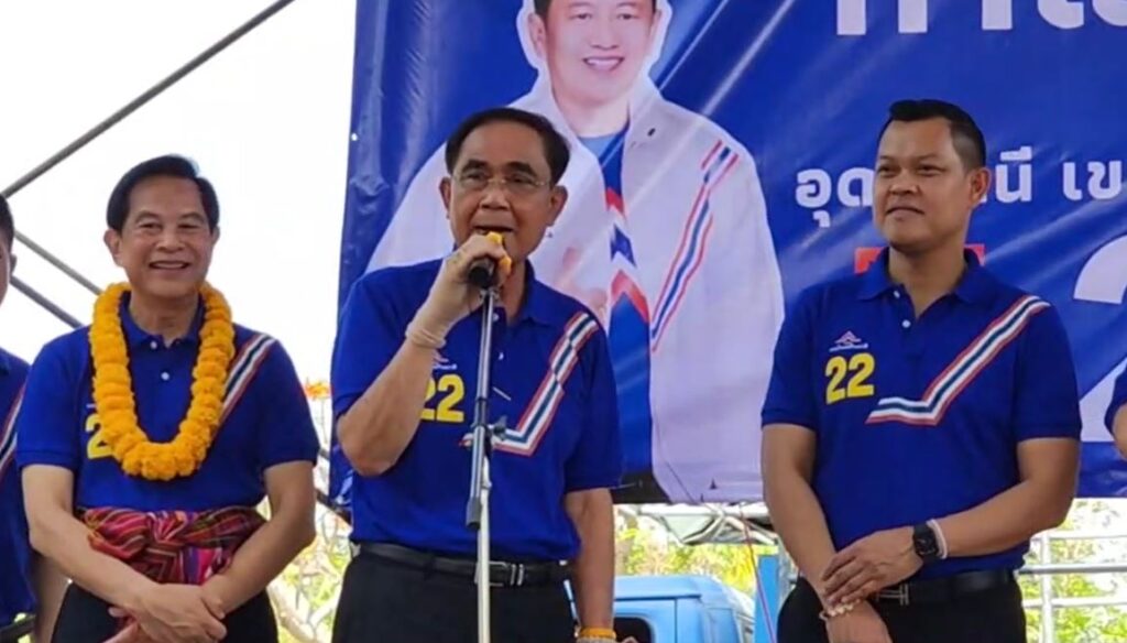 อย่างไรก็ตาม ก่อนหน้านี้ พล.อ.ประยุทธ์ ได้ไปขึ้นเวทีปราศรัยเพื่อแนะนำผู้บริหารพรรค และผู้สมัคร ส.ส.ของพรรครวมไทยสร้างชาติ ใน จ.อุดรธานี นครพนม และสกลนคร
