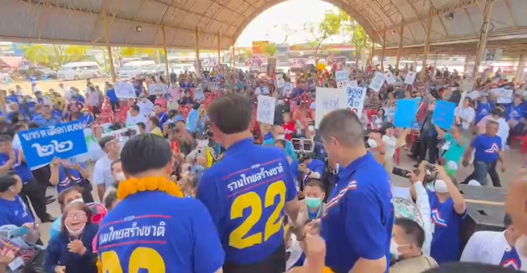 พล.อ.ประยุทธ์ จันทร์โอชา ประธานคณะกรรมการกำหนดแนวทางและยุทธศาสตร์พรรครวมไทยสร้างชาติ (รทสช.) พร้อมด้วยนายพีระพันธุ์ สาลีรัฐวิภาค หัวหน้าพรรค นายธนกร วังบุญคงชนะ นายอนุชา บูรพชัยศรี นายชัชวาลล์ คงอุดม รองหัวหน้าพรรค เดินทางมาปราศรัยจุดที่ 2 บริเวณสวนสาธารณะหนองไผ่ ต.หนองเม็ก อ.หนองหาร จ.อุดรธานี