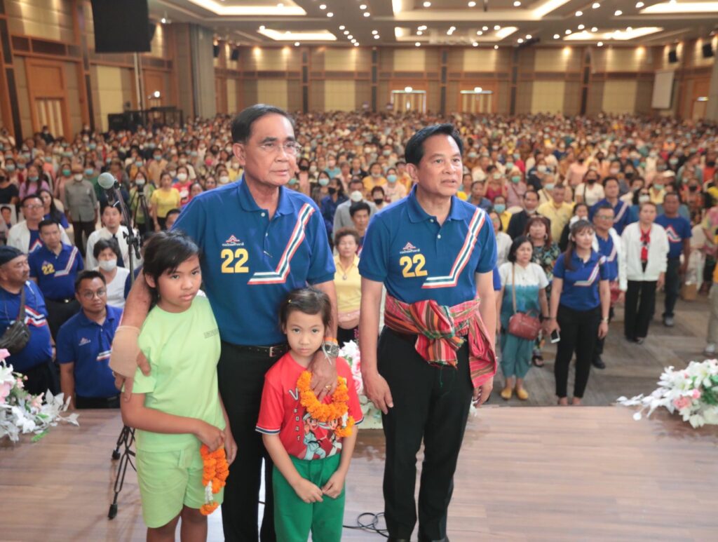 พล.อ.ประยุทธ์ ขึ้นเวทีปราศรัยกล่าวถึงนโยบายที่จะมาช่วยสนับสนุนให้กับประชาชนในทุกระดับทุกวัย ทั้งเรื่องของกองทุนประชาชน การแก้หนี้สิน การดูแลประชาชนในทุกกลุ่ม พร้อมระบุว่า เงินในอากาศจับต้องไม่ได้มีแต่ลม แต่เงินที่อยู่ในบัตรสวัสดิการพลัสเป็นเงินที่จับต้องได้ เป็นเงินจริงๆ และยังคงย้ำให้ประชาชนเลือกกัปตันเครื่องบินที่มีประสบการณ์ที่จะนำพาประเทศไทยต่อไป พร้อมกับอ้อนว่าตนเป็นคนรักจริง ดังนั้น ถ้ารักใครก็รักจริง อย่าทิ้งกันนะ ตนเป็นลูกข้าวนึ่งอย่างแท้จริง รักแล้ว รักอยู่ รักต่อ