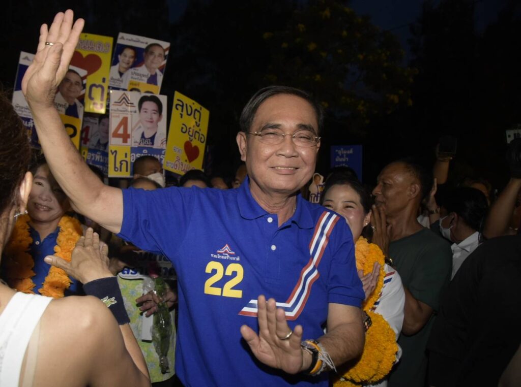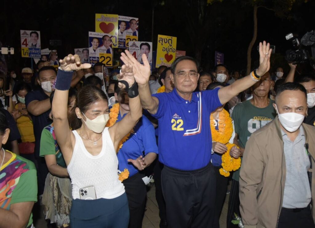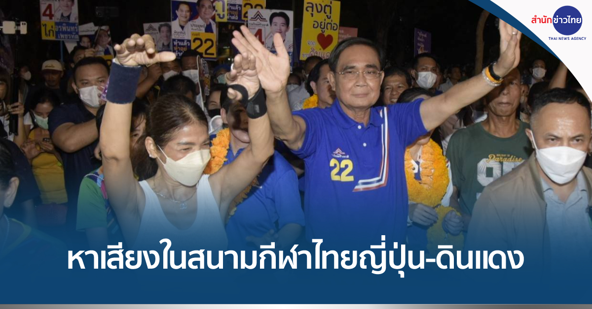พล.อ.ประยุทธ์ จันทร์โอชา ประธานคณะกรรมการกำหนดแนวทางและยุทธศาสตร์พรรครวมไทยสร้างชาติ (รทสช.) พร้อมด้วยนายพีระพันธุ์ สาลีรัฐวิภาค หัวหน้าพรรค นายเอกนัฏ พร้อมพันธุ์ เลขาธิการพรรค ร่วมลงพื้นที่หาเสียง เพื่อขอคะแนนคนกรุงสนับสนุน น.ส.อรพินทร์ เพชรทัต ผู้สมัคร ส.ส.กทม.เขต 6 พญาไท ดินแดง เบอร์ 4 และ น.ส.ภรณี วัฒนโชติ ผู้สมัคร ส.ส.กทม.เขต 5 ห้วยขวาง วังทองหลาง (ยกเว้นแขวงคลองเจ้าคุณสิงห์) เบอร์ 11 และเชิญชวนให้เลือกเบอร์ 22 เบอร์ของพรรครวมไทยสร้างชาติ ณ สนามกีฬาไทยญี่ปุ่น-ดินแดง ท่ามกลางกองเชียร์และผู้สนับสนุนจำนวนมาก