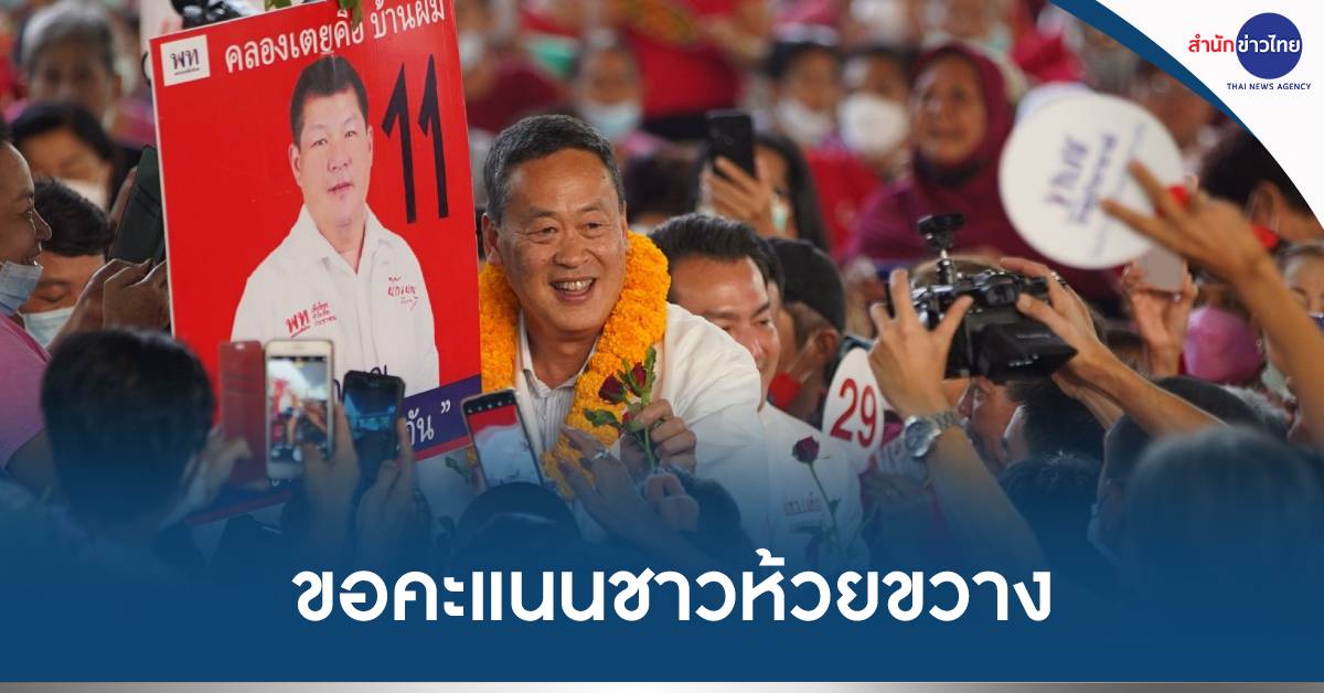 สนามกีฬาห้วยขวาง 28 เม.ย.- “เศรษฐา” วิงวอนชาวห้วยขวาง กา “เพื่อไทย” ทั้ง 2 ใบ ผลักดันทุกนโยบายให้เป็นจริง ย้ำแนวทางปรับค่าแรง-ปราบยาเสพติด ยันรถไฟฟ้า 20 บาทตลอดสายไม่ได้เอาใจแค่คนชั้นกลาง ลั่น ไม่ปล่อยบางกระทรวงให้พรรคอื่นได้