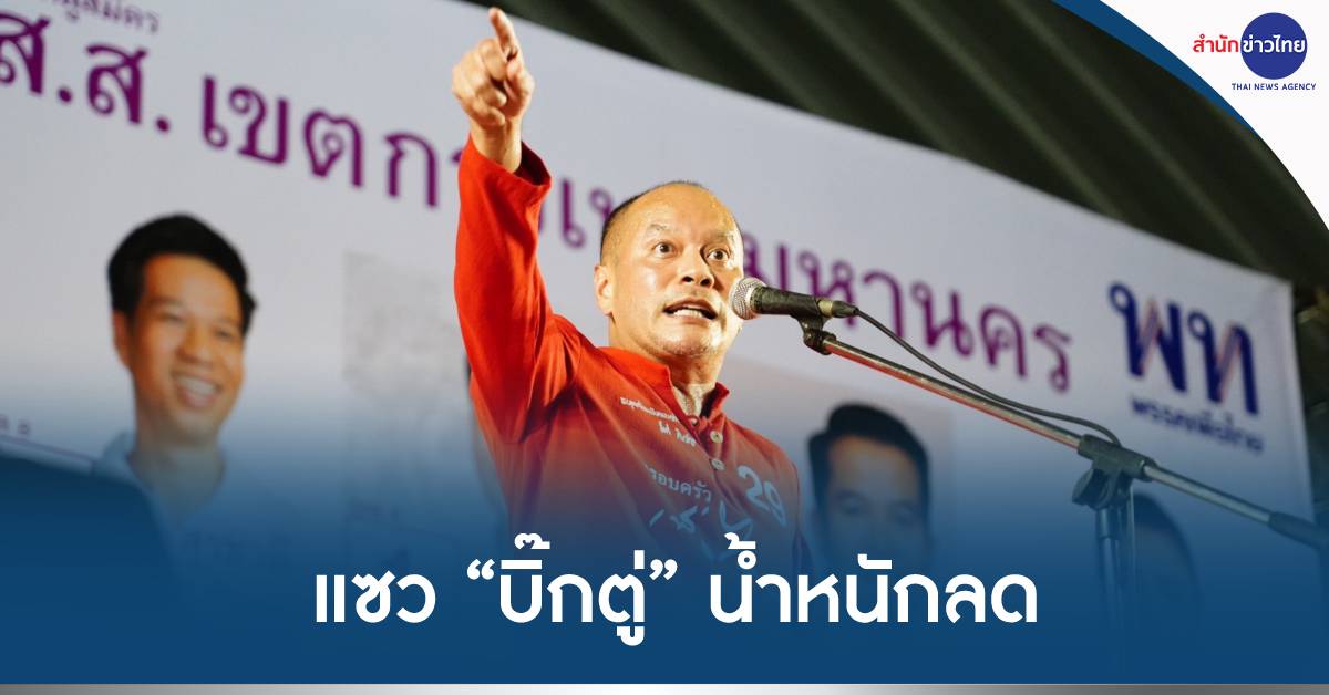 นายณัฐวุฒิ ใสยเกื้อ ผู้อำนวยการครอบครัวเพื่อไทย กล่าวปราศรัย“คิดใหญ่ ทำเป็น เพื่อคนกรุงเทพ” ในเขตกรุงเทพมหานคร ณ สนามกีฬาห้วยขวาง เขตดินแดง กรุงเทพมหานคร เริ่มปราศรัยด้วยการแซว พล.อ.ประยุทธ์ จันทร์โอชา แคนดิเดตนายกรัฐมนตรีพรรครวมไทยสร้างชาติ ไม่นึกเลยว่า จะเกิดข่าวสะเทือนขวัญว่า พล.อ.ประยุทธ์ น้ำหนักลด5ถึง6กิโล เกิดอาการปวดแวบปวดร้อน นอนไม่หลับ กระสับกระส่าย ให้สัมภาษณ์ว่าช่วงนี้ทำงานหนัก ตนอยากให้ พล.อ.ประยุทธ์ รู้ว่าคุณอยู่มาจะเต็ม 9 ปีเดือนหน้า ประชาชนน้ำหนักลด เงินลด ทุกอย่างลดลงทั้งโอกาสและอนาคตของประชาชน และที่มีประชาชนมาจำนวนมาก เพราะต้องการส่งสัญญาณให้ยอมแพ้ซะโดยดีไม่เช่นนั้นจะเจ็บปวดอย่างสาสมที่สุดที่เป็นนายกฯคนแรกและคนเดียวในประวัติศาสตร์ของเมืองไทยที่ลงเลือกตั้งแล้วลูกพรรคทิ้งหมด เพราะที่ภาคเหนือ ภาคอีสาน บอกชาวบ้านเขตให้เชือกผม ส่วนพรรคให้กาเพื่อไทย