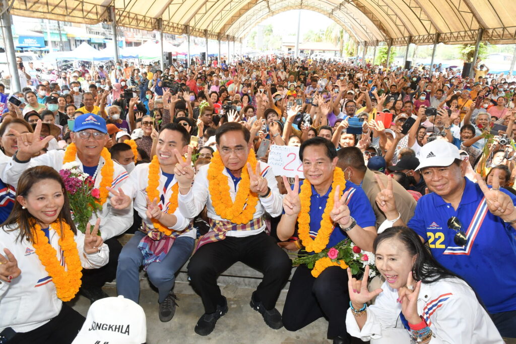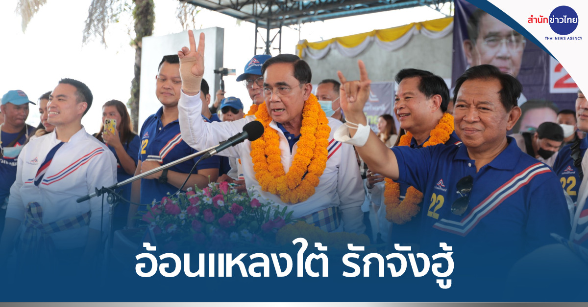 เมื่อวันที่ 29 เมษายน พรรครวมไทยสร้างชาติ (รทสช.) นำโดย พล.อ.ประยุทธ์ จันทร์โอชา นายกรัฐมนตรี ในฐานะประธานคณะกรรมการกำหนดแนวทางและยุทธศาสตร์พรรครวมไทยสร้างชาติ (รทสช.) ในฐานะแคนดิเดตนายกรัฐมนตรี พรรครวมไทยสร้างชาติ พร้อมด้วย นายพีระพันธุ์ สาลีรัฐวิภาค หัวหน้าพรรค นายเอกนัฏ พร้อมพันธุ์ เลขาธิการพรรค นายอนุชา บูรพชัยศรี รองหัวหน้าพรรค นายธนกร วังบุญคงชนะ รองหัวหน้าพรรค และนายวิสุทธิ์ ธรรมเพชร รองหัวหน้าพรรค นายสามารถ มาลุลีม ผู้บริหารพรรค และคณะผู้บริหารพรรคยกคณะใหญ่ลงพื้นที่ภาคใต้ จ.ตรัง จ.พัทลุง และ จ.สงขลา เพื่อหาเสียงช่วยผู้สมัคร ส.ส. ของพรรครวมไทยสร้างชาติในช่วงใกล้โค้งสุดท้ายก่อนการเลือกตั้ง