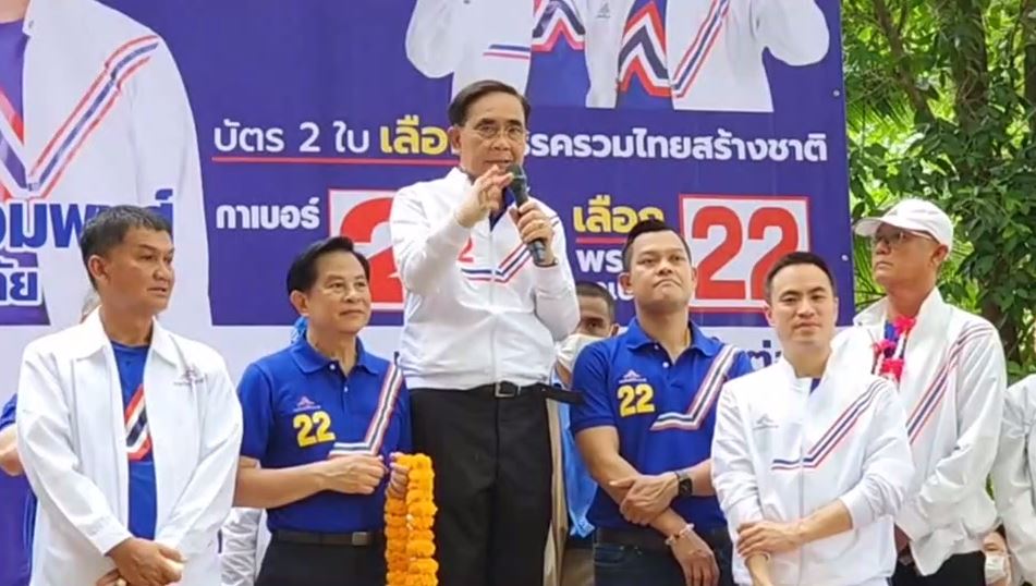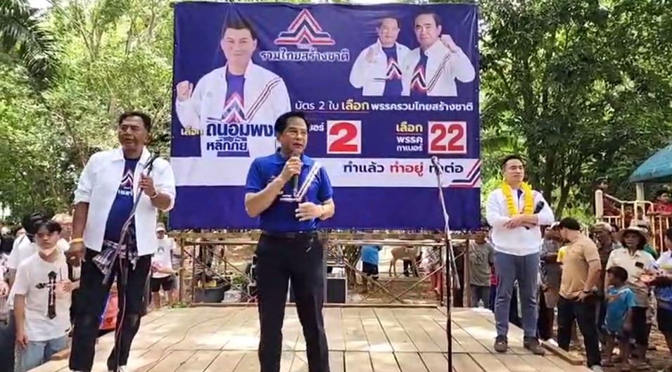 นายพีระพันธุ์ ปราศรัยว่า ตนและลุงตู่มาขอคะแนน ให้เลือกผู้สมัครส.ส.พรรครวมไทยสร้างชาติ วันที่ 14 พ.ค.นี้จะเป็นวันกำหนดชะตาอนาคตของประเทศ ตนมาทำพรรครวมไทยสร้างชาติเพราะอยากมีพรรคการเมืองที่ดีและมีนักการเมืองที่ดีมาอยู่ในพรรค ต้องการเป็นพรรคที่ซื่อสัตย์ซื่อตรงไม่โกงไม่กิน นี่คืออุดมการณ์ของพรรครวมไทยสร้างชาติ ที่สำคัญที่สุดเราจะสร้างประเทศชาติไปด้วยกัน ได้เสาค้ำจุนคือสถาบันหลัก 3 สถาบัน ต้องอยู่คู่กับประเทศไทยไม่เปลี่ยนแปลง คือชาติศาสนาและพระมหากษัตริย์ ตนไม่เคยคิดมาก่อนว่า พล.อ.ประยุทธ์จะมาอยู่ที่พรรครวมไทยสร้างชาติ แต่เมื่อถึงวันที่ต้องตัดสินใจว่าจะนำพาประเทศไทยไปต่อ จึงมาอยู่พรรครวมไทยสร้างชาติ แล้ววันนี้พวกเราต้องตัดสินใจ ว่า พล.อ.ประยุทธ์จะต้องทำต่อ เพื่อลูกหลาน 8 ปีที่ผ่านมาพิสูจน์ฝีมือมาแล้วว่าดีขึ้นแค่ไหนจึงไม่ต้องพิสูจน์ฝีมือ วันนี้ลุงตู่เลยมาขอคะแนนให้ 14 พฤษภาคม เข้าคูหาเลือกผู้สมัคร ทั้ง 2 ใบบัตรสีม่วงเลือกนายถนอมพงษ์เบอร์ 2 และบัตรสีเขียวเลือกพรรครวมไทยสร้างชาติเบอร์ 22 ถ้าได้คะแนนมากๆจะได้พวกเราไปยกมือในสภา