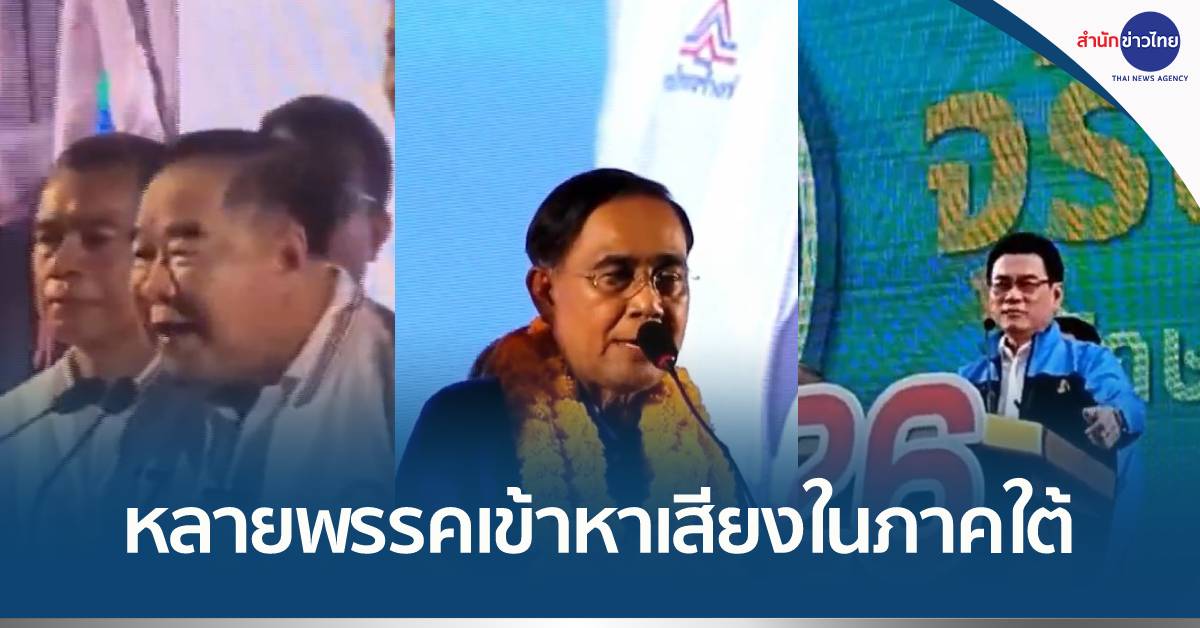 30 เม.ย.-หลายพรรคระดมเข้าหาเสียงในภาคใต้ หลังผลสำรวจคนใต้อยู่ระหว่างตัดสินใจเลือกพรรคไหนช่วงโค้งสุดท้าย