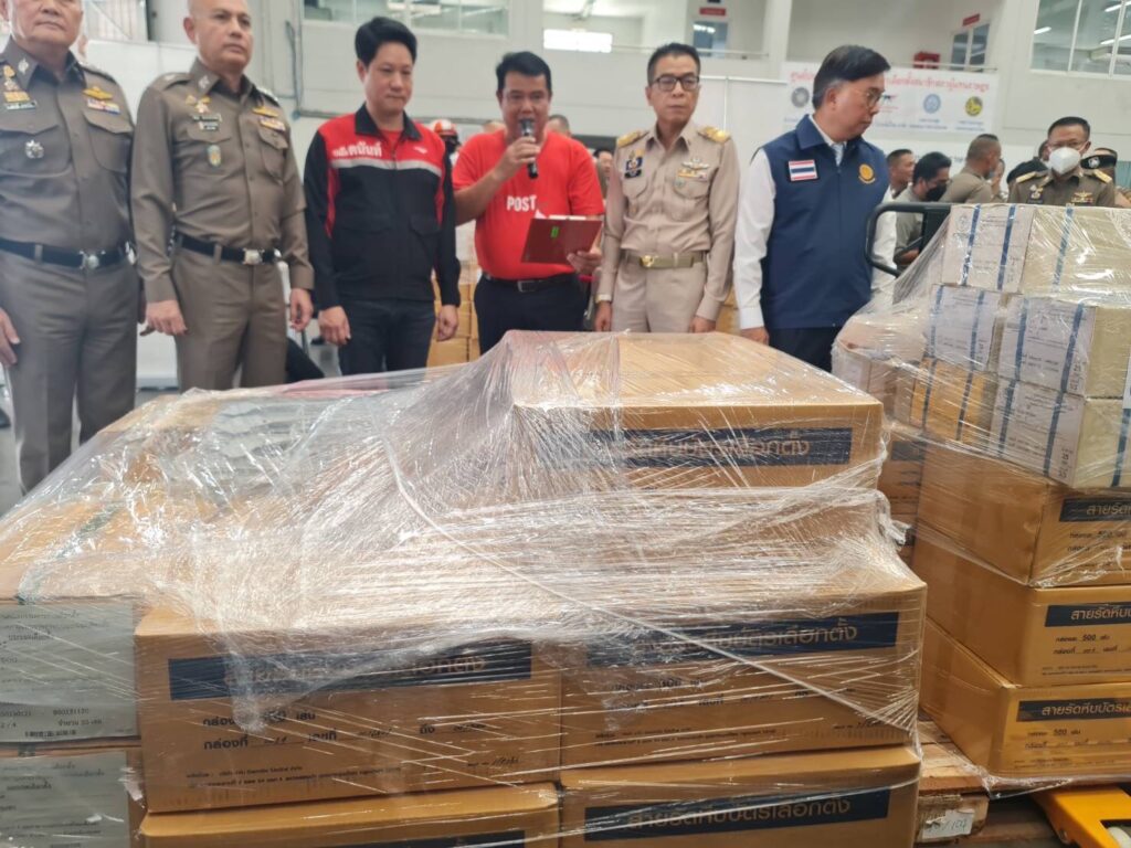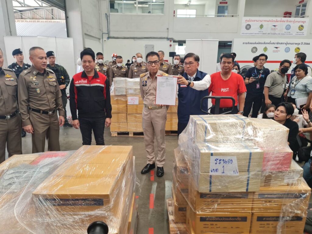 ไปรษณีย์ไทย 1 พ.ค.- สำนักงานคณะกรรมการการเลือกตั้ง สำนักงานตำรวจแห่งชาติ ร่วมกับบริษัทไปรษณีย์ไทย จำกัด แถลงข่าวพิธีปล่อยขบวนรถขนส่งบัตรเลือกตั้งไปยังเขตเลือกตั้งทั่วประเทศ ประสานเสียงยืนยัน พร้อมจัดเลือกตั้ง ยกเว้นซูดาน ที่มีปัญหาความไม่สงบ