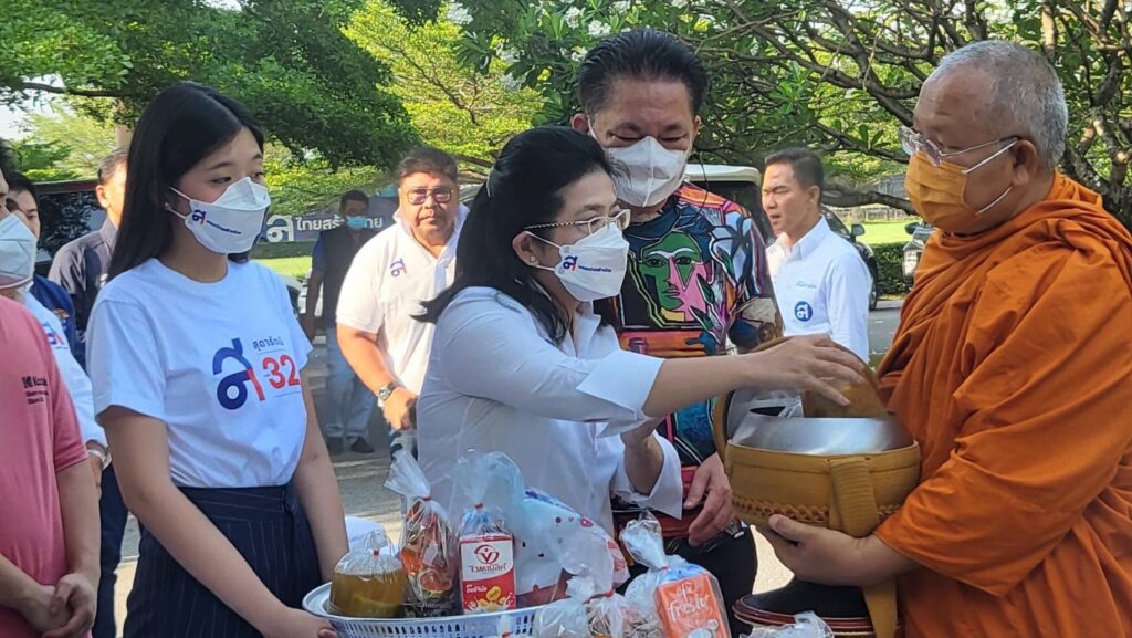 คุณหญิงสุดารัตน์ เกยุราพันธุ์ หัวหน้าพรรคไทยสร้างไทย และแคนดิเดตนายกรัฐมนตรี เปิดบ้านลาดปลาเค้า 60 ทำบุญตักบาตร พระสงฆ์ 9 รูป พร้อมกับผู้บริหารพรรค เนื่องในโอกาสวันคล้ายวันเกิด 1 พฤษภาคม 2566