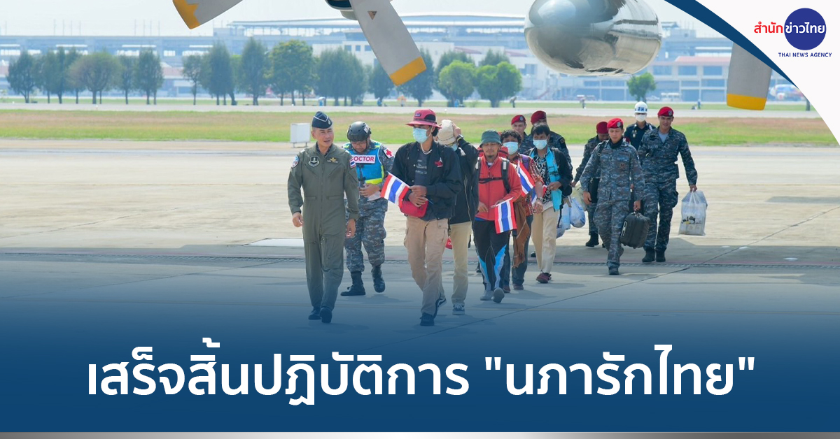กทม. 1 พ.ค.- เสร็จสิ้นปฏิบัติการ “นภารักไทย” ภารกิจพาคนไทยกลับบ้าน เครื่องบิน C-130 ของกองทัพอากาศ พร้อมคนไทย 5 คนสุดท้าย กลับถึงไทยเรียบร้อยแล้ว