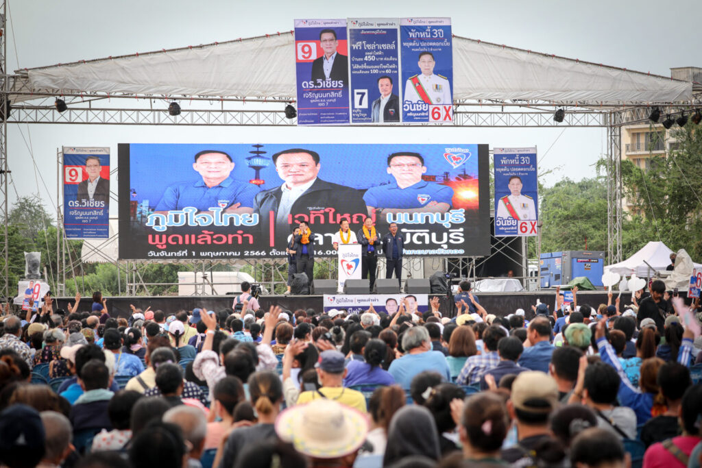 1 พฤษภาคม 2566 ผู้สื่อข่าวรายงานว่า นายอนุทิน ชาญวีรกูล หัวหน้าพรรคภูมิใจไทย พร้อมด้วยผู้บริหาร และแกนนำพรรค นายศุภชัย ใจสมุทร นายทะเบียนสมาชิกพรรค ภูมิใจไทย นางสาวศุภมาส อิศรภักดี ผู้สมัคร ส.ส.ระบบบัญชีรายชื่อ พรรคภูมิใจไทย เดินทางมาปราศรัยหาเสียงที่ ตลาดสมบัติบุรี อ.บางบัวทอง จ.นนทบุรี ช่วย ดร.วิเชียร เจริญนนทสิทธิ์ เบอ9 เขต 7 และนายวันชัย เจริญนนทสิทธิ์ เบอร์ 6 เขต 8 มีประชาชนเข้ารับฟังปราศัยหลายพันคน บรรยากาศคึกคัก สนุกสนาน โดยบางช่วงบางตอนของการปราศรัยประชาชนได้พร้อมใจกันตะโกนสโลแกนของพรรคภูมิใจไทยว่า “พูดแล้วทำ” ทำให้นายอนุทินต้องหยุดปราศรัยและปรบมือให้