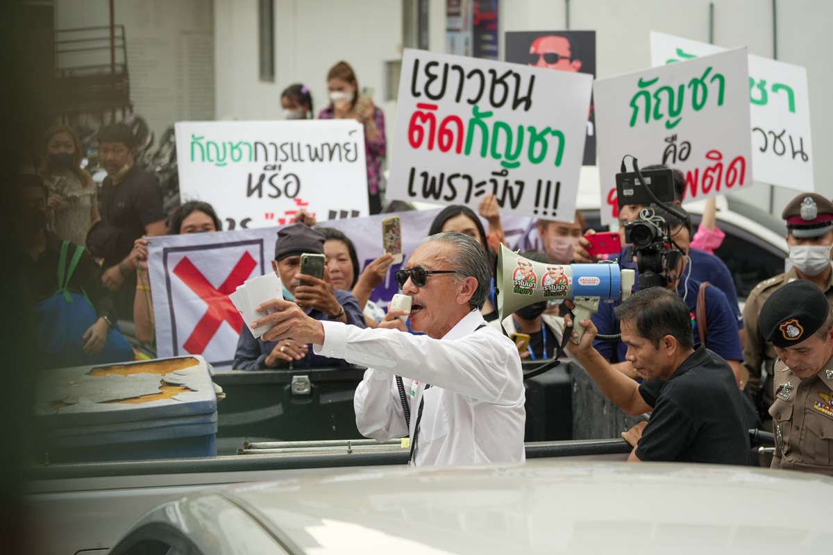 ระหว่างนั้น มวลชนที่มาฟังปราศรัยได้ตะโกนไล่นายชูวิทย์ว่า “ออกไป ออกไป” ขณะที่บางคนตะโกนว่า “เรามาฟังอนุทิน”