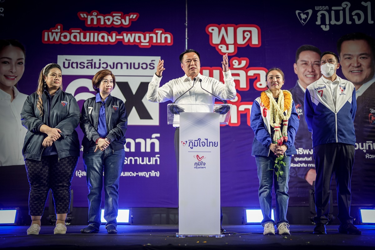 2 พฤษภาคม 2566 ณ โดมหน้าสถานีตำรวจนครบาลดินแดง นายอนุทิน ชาญวีรกูล หัวหน้าพรรคภูมิใจไทย พร้อมด้วย นายพุทธิพงษ์ ปุณณกันต์ ผู้อำนวยการเลือกตั้งกรุงเทพฯ, คณะผู้บริหารพรรค, น.ส.อนุสรี ทับสุวรรณ ผู้สมัคร ส.ส.บัญชีรายชื่อ และนายประเดิมชัย บุญช่วยเหลือ ผู้สมัคร ส.ส.กรุงเทพมหานคร เขต 5 เปิดเวทีปราศรัยช่วย น.ส.ภาดาท์ วรกานนท์ ผู้สมัคร ส.ส.กรุงเทพมหานคร เขต 6 หาเสียง มีประชาชนมาฟังการปราศรัยประมาณ 1,000 คน บรรยากาศเต็มไปด้วยความคึกคัก