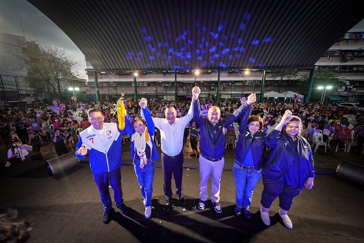 กรุงเทพฯ 2 พ.ค. – วางอุเบกขา ใช้สติสู้! “อนุทิน” โชว์นิ่ง ต้อนรับด้วยรอยยิ้ม หลัง “ชูวิทย์” บุกป่วนเวทีดินแดง ขณะช่วย “ภาดาท์” หาเสียง ด้านประชาชนตะโกนลั่น “เรามาฟังอนุทิน”