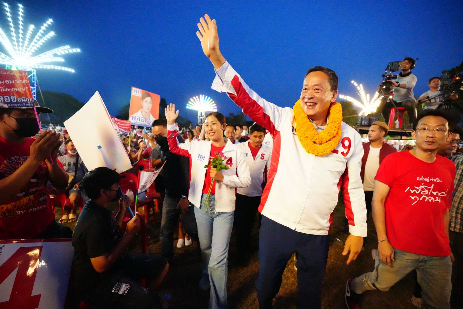 “การเลือกตั้งวันที่ 14 พฤษภาคม พรรคร่วมรัฐบาลมีแต้มต่อ เพราะมี ส.ว.250 คนพร้อมยกมือให้พลเอกประยุทธ์ เริ่มต้นเราก็เป็นรองอยู่ 250 เสียงแล้ว ดังนั้น เลือกพรรคเพื่อไทยทั้งคนทั้งพรรคและนายกรัฐมนตรีจะมาจากพรรคเพื่อไทยเท่านั้น” นายเศรษฐา กล่าว