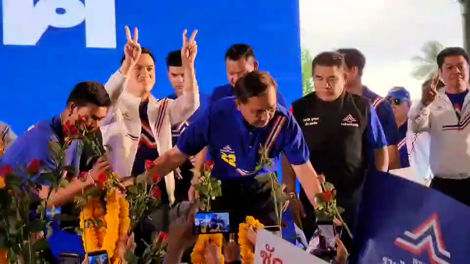 สุราษฎร์ธานี 3 พ.ค.- “พล.อ.ประยุทธ์” พร้อมด้วยแกนนำพรรครวมไทยสร้างชาติขึ้นเวทีปราศรัยใหญ่ จ.สุราษฎร์ธานี ขอแรงคนใต้เลือกผู้สมัครของพรรค เพื่อหนุนให้เข้าไปทำงานต่อ อ้อนคนใต้อย่าทิ้งกัน “รักลุงตู่น้อยๆ แต่ขอให้รักนานๆ”