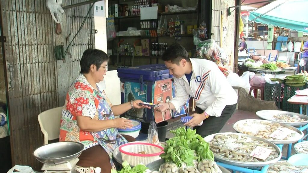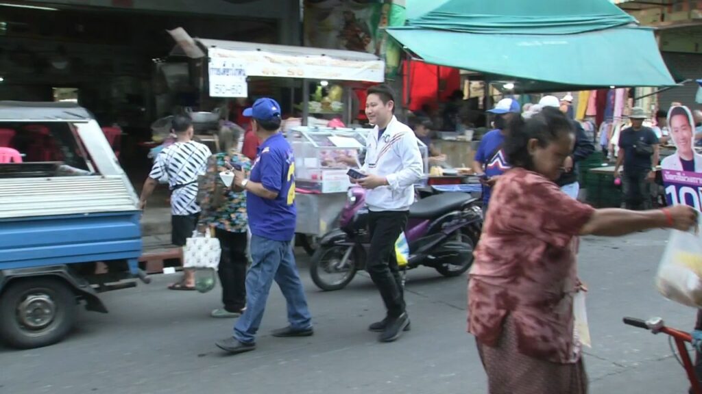 นายเขตรัฐ เหล่าธรรมทัศน์ ผู้สมัคร ส.ส.กทม. หมายเลข 10 พรรครวมไทยสร้างชาติ พร้อมด้วยนายสามารถ มะลูลีม กรรมการบริหารพรรครวมไทยสร้างชาติ ลงพื้นที่หาเสียงตลาดเช้าพระโขนง ภายในซอยปรีดี ซอย 2