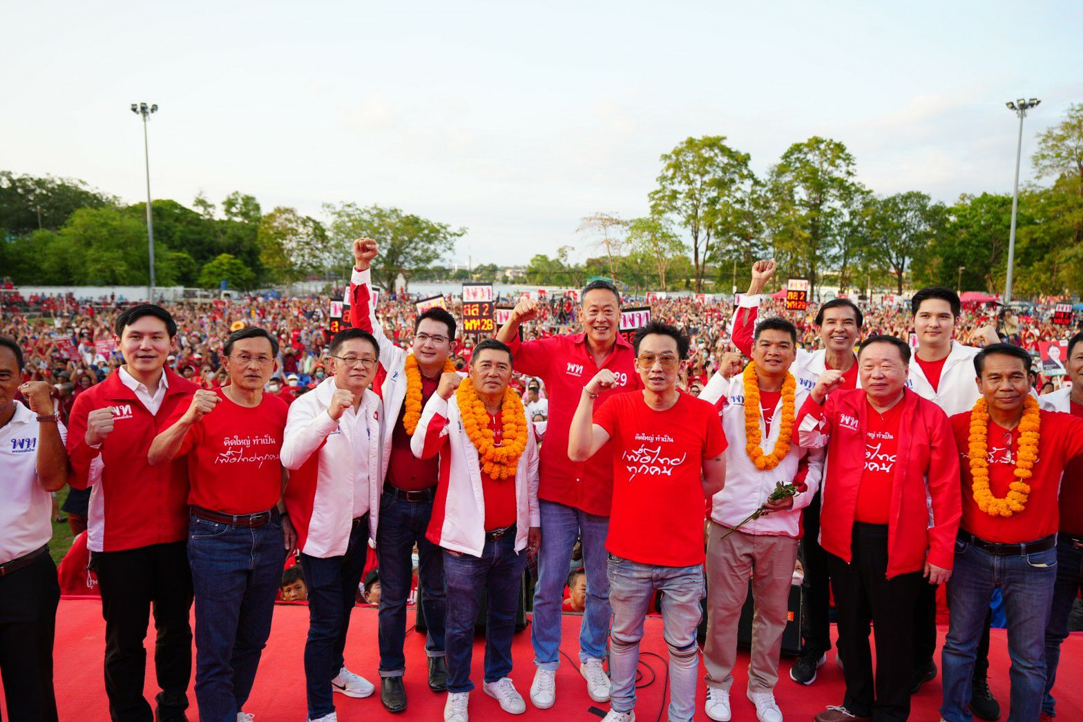 พรรคเพื่อไทย เปิดเวทีปราศรัย “คิดใหญ่ ทำเป็น เพื่อไทยทุกคน” ณ สนามสามเหลี่ยม ทุ่งนาเชย อำเภอเมือง จังหวัดจันทบุรี นำโดย นายเศรษฐา ทวีสิน แคนดิเดตนายกรัฐมนตรี พรรคเพื่อไทย และประธานที่ปรึกษาหัวหน้าครอบครัวเพื่อไทย นายพานทองแท้ ชินวัตร ที่ปรึกษาศูนย์ปฏิบัติการการเลือกตั้งพรรคเพื่อไทย นายสุทิน คลังแสง รองหัวหน้าพรรคเพื่อไทย นายประเสริฐ จันทรรวงทอง เลขาธิการพรรคเพื่อไทย นายจาตุรนต์ ฉายแสง คณะกรรมการยุทธศาสตร์ฯ พรรคเพื่อไทย นายสุชาติ ตันเจริญ ผู้สมัคร ส.ส.บัญชีรายชื่อ พรรคเพื่อไทย นายสุริยะ จึงรุ่งเรืองกิจ ผู้สมัคร ส.ส.บัญชีรายชื่อ พรรคเพื่อไทย นายณัฐวุฒิ ใสยเกื้อ ผู้อำนวยการครอบครัวเพื่อไทย พร้อมด้วยผู้สมัคร ส.ส. ประกอบด้วย นายมงคล ศรีคำแหง ผู้สมัคร ส.ส.จันทบุรี เขต 1 เบอร์ 2, นายวันทิต ตั้งรักษาสัตย์ ผู้สมัคร ส.ส.จันทบุรี เขต 2 เบอร์ 2, นายแสนคม อนามพงษ์ ผู้สมัคร ส.ส.จันทบุรี เขต 3 เบอร์ 3 โดยมีพี่น้องในอำเภอเมือง และอำเภอใกล้เคียง มาร่วมฟังปราศรัยกันหนาแน่นกว่าหมื่นคน