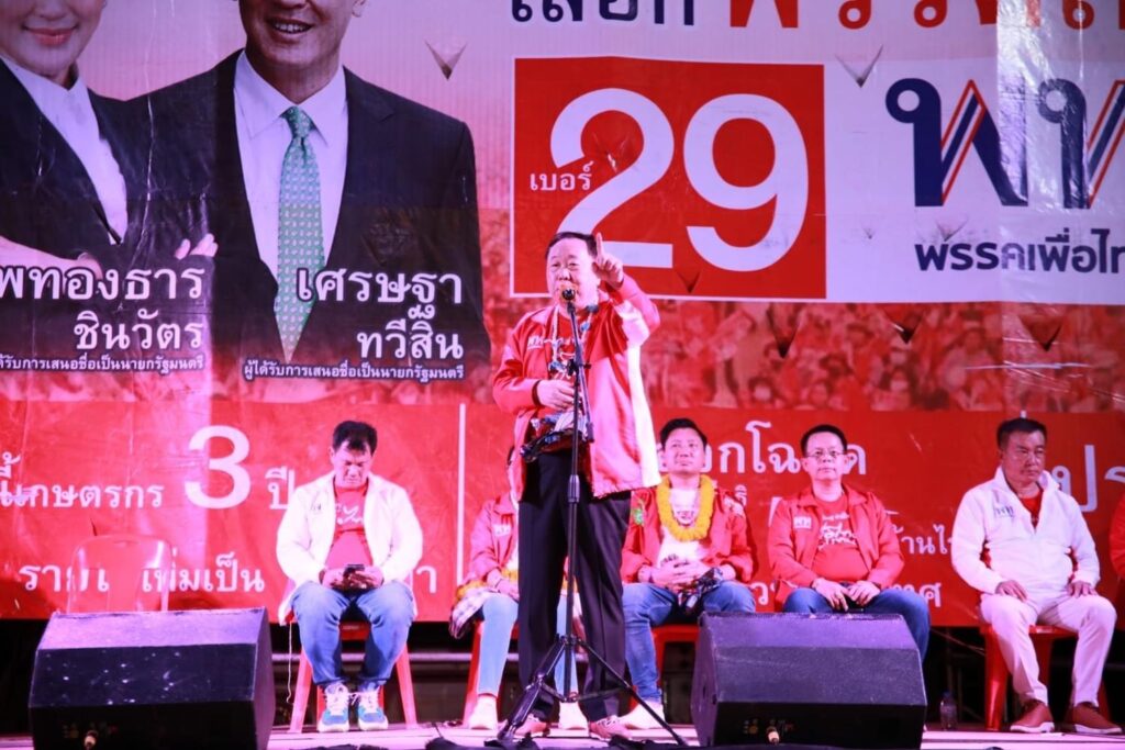 นายสุชาติ ตันเจริญ ผู้สมัคร ส.ส.บัญชีรายชื่อ และแกนนำพรรคภาคตะวันออก พรรคเพื่อไทย เปิดเวทีปราศรัยเพื่อช่วยนายศักดิ์ชาย ตันเจริญ ผู้สมัคร ส.ส.ฉะเชิงเทรา เขต 3 เบอร์ 5 พรรคเพื่อไทย หาเสียง โดยมีนายคชาภา ตันเจริญ หรือมดดำ พิธีกรชื่อดัง บุตรชายของนายสุชาติ พี่ชายของนายศักดิ์ชาย ซึ่งเป็นสมาชิกและผู้ช่วยหาเสียงพรรคเพื่อไทย ร่วมด้วย โดยมีประชาชนในพื้นที่ร่วมฟังการปราศรัยอย่างคึกคัก