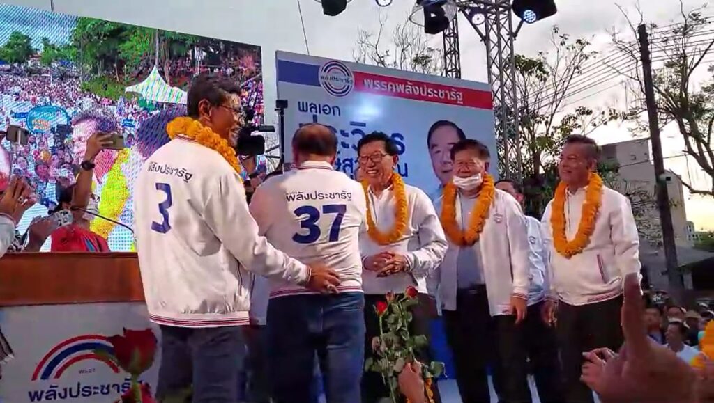 พรรคพลังประชารัฐ (พปชร.) เปิดเวทีปราศรัยใหญ่ภาคใต้ ที่ลานพระบรมราชานุสาวรีย์ พระบาทสมเด็จพระจุลจอมเกล้าเจ้าอยู่หัว รัชกาลที่ 5 (ศาลากลางจังหวัดตรัง) นำโดย พล.อ.ประวิตร วงษ์สุวรรณ รองนายกรัฐมนตรีและหัวหน้าพรรคพลังประชารัฐ และคณะกรรมการบริหารพรรค ประกอบด้วย ศ.ดร.นฤมล ภิญโญสินวัฒน์ เหรัญญิก พรรคพลังประชารัฐ ในฐานะผู้ดูแลกำกับการเลือกตั้งพื้นที่ กทม., นายสนธิรัตน์ สนธิจิรวงศ์ ประธานยุทธศาสตร์การเมือง และนายมิ่งขวัญ แสงสุวรรณ์ ทีมเศรษฐกิจพรรคพลังประชารัฐ พร้อมด้วยผู้สมัครของพรรคพลังประชารัฐ ประกอบด้วย นายนิพันธ์ ศิริธร ผู้สมัคร ส.ส.บัญชีรายชื่อ, นายกิตติพงศ์ ผลประยูร เขต 1 เบอร์ 3, นายทวี สุระบาล เขต 2 เบอร์ 6 , พ.ต.ท.นัทธพงศ์ ใจสมุทร เขต 3 เบอร์ 1 และ พ.ต.อ.บรรลือ ชูเวทย์ เขต 4 เบอร์ 4