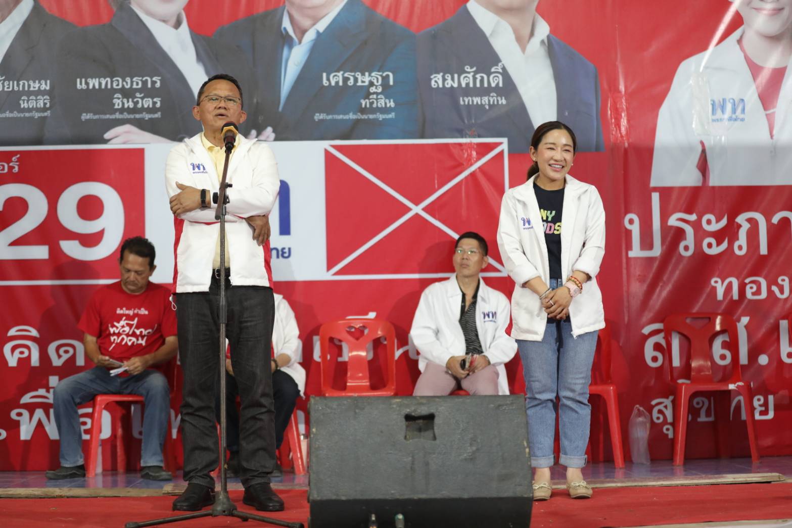 สุโขทัย 9 พ.ค. – “สมศักดิ์” พา “โบว์ ประภาพร” ผู้สมัคร ส.ส.สุโขทัย ขึ้นเวทีปราศรัยสุดท้าย ย้ำพรรคเพื่อไทยมีประสบการณ์บริหารเป็น แย้มสุโขทัยมี ส.ว. 1 คน ช่วยตั้งรัฐบาลได้แน่นอน “หมอชัย” โชว์โพล เพื่อไทยชนะ 261 เก้าอี้แล้ว แนะเลือกผู้แทนที่จะได้เป็นฝั่งรัฐบาล เพื่อช่วยแก้ปัญหาได้ เตือนอย่าเลือกด้วยความกลัว แต่ต้องเลือกด้วยความชัวร์