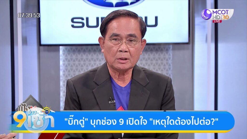 กรุงเทพฯ 10 พ.ค. – “บิ๊กตู่” บุกช่อง 9 เปิดใจ “เหตุใดต้องไปต่อ?” พูดคุยในสตูดิโอครั้งแรกในรายการฟังหูไว้หู เผยเกรงบ้านเมืองจะมีปัญหา เป็นห่วงลูกหลาน
