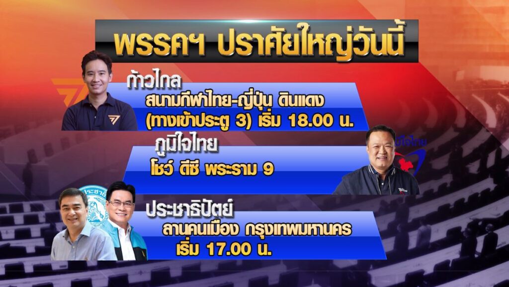 12 พ.ค. – โค้งสุดท้ายการเลือกตั้ง บรรดาพรรคการเมืองต่างหากลยุทธ์และหมัดเด็ดเพื่อมัดใจประชาชน แต่จะได้ผลมากน้อยแค่ไหน