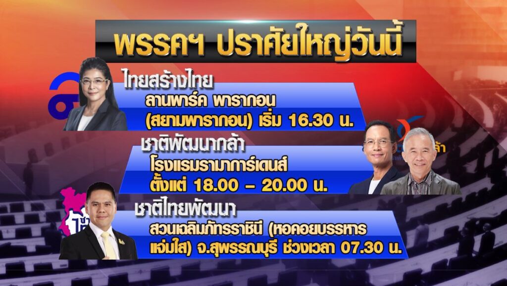 ต้องมาลุ้นกันว่าโค้งสุดท้ายแต่ละพรรคการเมืองจะงัดไม้เด็ดใดออกมาเรียกคะแนน และกลยุทธ์แบบไหนที่จะตอบโจทย์ โดนใจประชาชน . – สำนักข่าวไทย