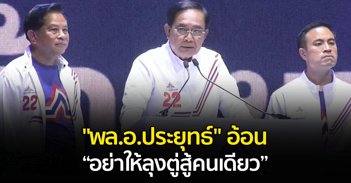กรุงเทพฯ 12 พ.ค. – “พล.อ.ประยุทธ์” อ้อนรวมทุกหัวใจ ช่วยรักษาบ้านเมือง ชูแคมเปญ “อย่าให้ลุงตู่สู้คนเดียว” ขอคะแนนและขอโอกาสให้ “พล.อ.ประยุทธ์” ได้กลับมาเป็นนายกรัฐมนตรีอีกครั้ง