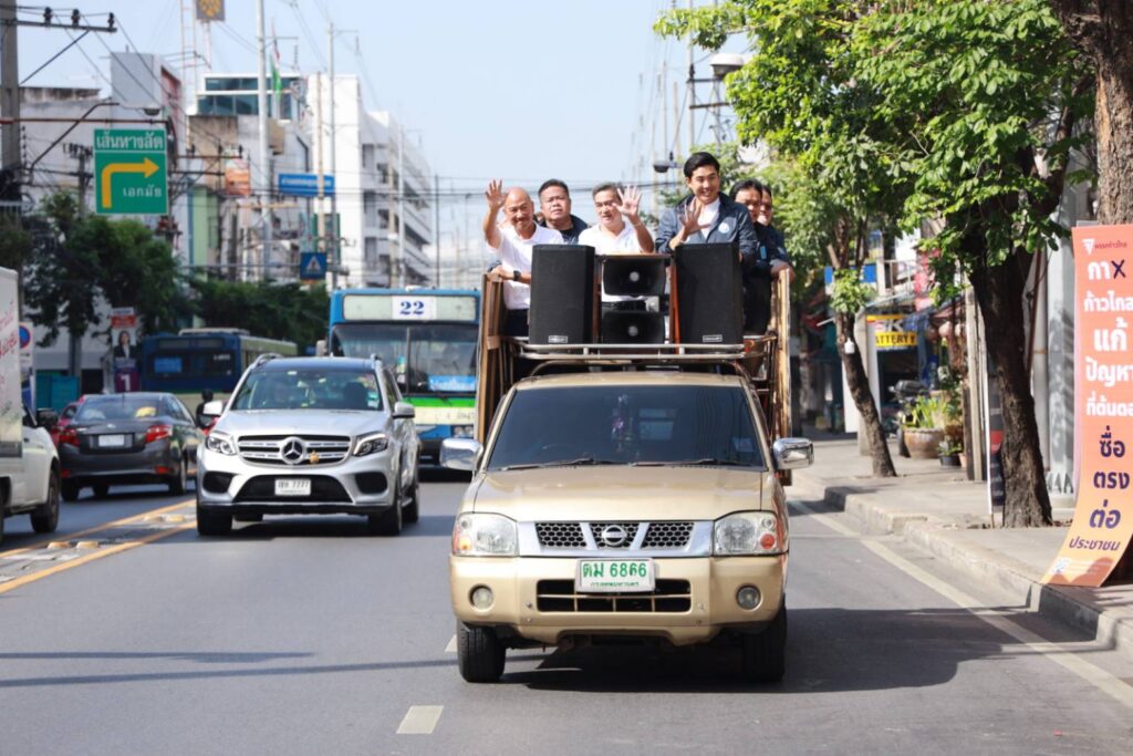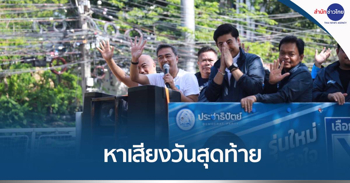 กทม. 13 พ.ค. – วันสุดท้ายของการหาเสียงเลือกตั้ง นายอภิสิทธิ์ เวชชาชีวะ อดีตหัวหน้าพรรคประชาธิปัตย์ ขึ้นรถแห่หาเสียง พร้อมด้วยนายพงศกร ขวัญเมือง ผู้สมัครเขตคลองเตย-วัฒนา เบอร์ 5 พรรคประชาธิปัตย์ เพื่อขอคะแนนเสียง ขอความไว้วางใจ และขอโอกาสรับใช้พี่น้องประชาชน