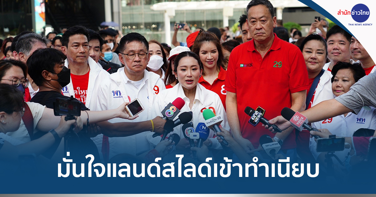 ขณะที่นายเศรษฐา ยังมั่นใจว่าพรรคเพื่อไมยจะได้เป็นแกนนำจัดตั้งรัฐบาล และชนะแบบแลนด์สไลด์เพราะมั่นใจในนโยบายของพรรค และต้นพูดชัดเจนว่าเพื่อนใครจะทำอะไรถ้าได้เป็นรัฐบาลจึงเชื่อว่าประชาชน จะเห็นความชัดเจนของเพื่อไทยเพราะตอนนี้ประเทศไทยยืนอยู่บนปากเหวตัวเลขดัชนีเศรษฐกิจไม่ดีจึงไม่มีเวลาสำหรับมือใหม่ อีก 10 แต่เพื่อไทยพร้อมเพราะผ่านมาแล้วทุกวิกฤติ และบุคลากรของเพื่อไทยก็พร้อมวันแรกที่เดินเข้าทำเนียบ ทำงานเต็มที่ได้เลย