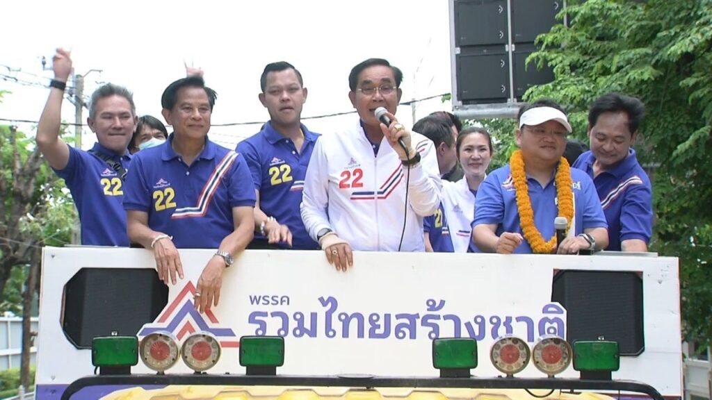 พลเอกประยุทธ์ จันทร์โอชา นายกรัฐมนตรีและ รมว.กลาโหม ประธานคณะกรรมการยุทธศาสตร์ และแคนดิเดตนายกรัฐมนตรีของพรรครวมไทยสร้างชาติ ให้สัมภาษณ์ก่อนขึ้นรถแห่หาเสียง ว่า วันนี้ก็เป็นวันในการหาเสียงวันสุดท้ายพรุ่งนี้เป็นวันสำคัญ ของการกำหนดชะตาของประเทศไทย ก็ขอวิงวอน ขอร้องไปทุกคนที่มีสิทธิ์เลือกตั้ง ออกไปใช้สิทธิ์อย่างเต็มที่ทุกคน ทุกพื้นที่ทั่วประเทศไทย เพราะว่านี่คือการเดินหน้าประเทศไทยไปด้วยกันและขอให้สนับสนุนพรรครวมไทยสร้างชาติ ทั้ง2ใบทั้งส.ส.เขตและพรรค ขอให้ทุกคนไปลงมติให้พร้อมเพรียงกันในวันพรุ่งนี้ประเทศไทยต้องไปต่อ แต่จะไปอย่างไรเราต้องคิดว่าบ้านเมืองเรามีอะไรหลายอย่างที่ดีขึ้นบ้างแล้วในตอนนี้ ก็ต้องต่อเติมอีกนิดหน่อยก็จะไปได้ไกลกว่านี้ ถ้าเราทำลายในสิ่งที่เรามีอยู่แล้วและเริ่มสร้างใหม่คิดว่ามันไม่มีเวลาแล้ว มันช้า ทำให้ทุกอย่างมันช้าไปหมด สิ่งที่ทำมาแล้วก็พังทลายไปทั้งหมด เราไม่จำเป็นต้องรื้อบ้านหรือประเทศไทยทั้งประเทศจึงจะสร้างบ้านหลังใหม่อย่างที่พลิกแผ่นดินอย่างนี้มันทำไม่ได้ นี่คือความคิดของผม ก็สุดแล้วแต่ประชาชนที่จะเลือกตั้งเอาก็แล้วกัน เคารพในสิทธิ์เสียงของประชาชนทุกคน ขอให้ทุกคนออกมาเลือกตั้งคนทุกช่วงวัย ทั้งเด็กและผู้ใหญ่ คนทุกเจเนอเรชัน เราทำเพื่อคนทุกเจนอยู่แล้ว อย่าไปแบ่งแยก เจเนอเรชันต่างๆแบ่งแยกไม่ได้เพราะเชื่อมโยงกันทั้งหมด และขอบคุณสื่อมวลชนทุกคนด้วย
