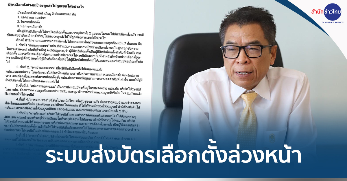 กทม. 13 พ.ค.- เลขาฯ กกต. โพสต์แจง 7 ระบบการตรวจสอบการส่งบัตรเลือกตั้งล่วงหน้าในเขต นอกเขตและนอกราชอาณาจักร กลับไปยังเขตเลือกตั้ง
