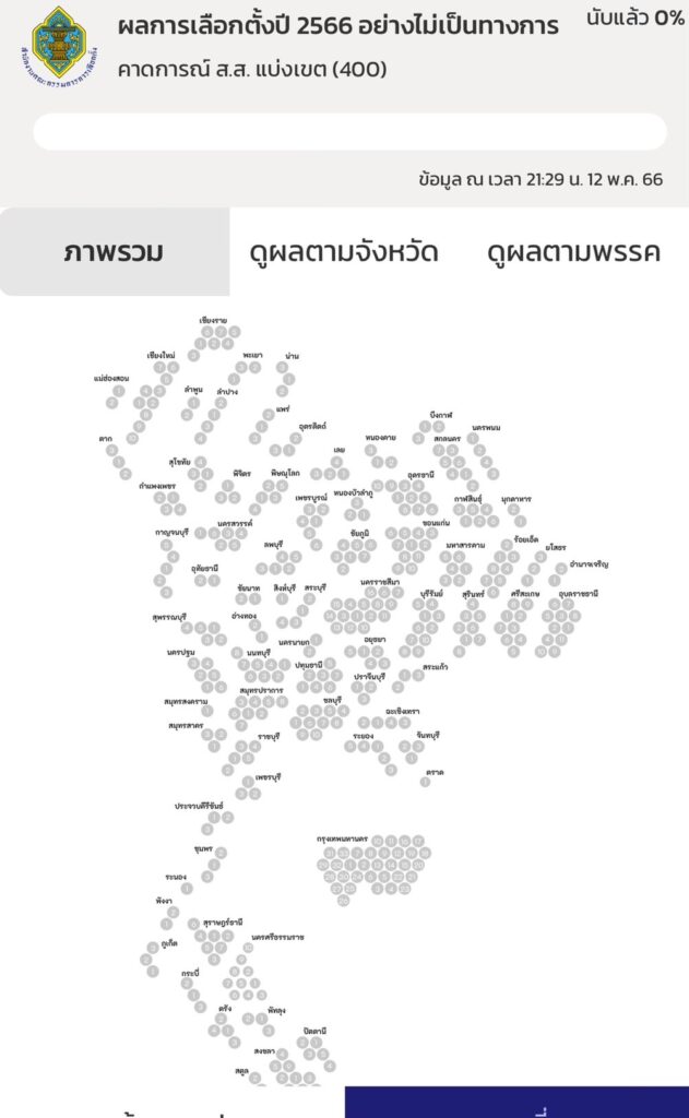 ทั้งนี้ ช่วงค่ำที่ผ่านมา ผู้สื่อข่าวได้ทำการตรวจสอบเข้าไปยังที่หน้าเว็บไซต์ https://www.ectreport.com/by-province ซึ่งเป็นเว็บที่ กกต.เปิดให้ประชาชนสามารถติดตามผลคะแนนการเลือกตั้งส.ส. พบว่าระบบจะเป็นการรายงานผลผ่านแดชบอร์ด จัดทำเป็น 3 หน้า แสดงผลการนับคะแนน ทั้งแบบภาพรวมความคืบหน้าการนับคะแนนทั่วประเทศ ผลคะแนนรายจังหวัดทั้ง 77 จังหวัด ผลคะแนนของพรรคการเมือง พร้อมประมวลผลเป็นเปอร์เซ็นต์ว่าผลการนับคะแนนมีความคืบหน้ามากน้อยแค่ไหน โดยคาดว่าคะแนนเเรกที่จะรายงานได้น่าจะเป็นช่วงเวลาประมาณ 18.30 น. และสามารถรู้ผลคะแนนแบบไม่เป็นทางการ ประมาณเวลา 22.00 น.