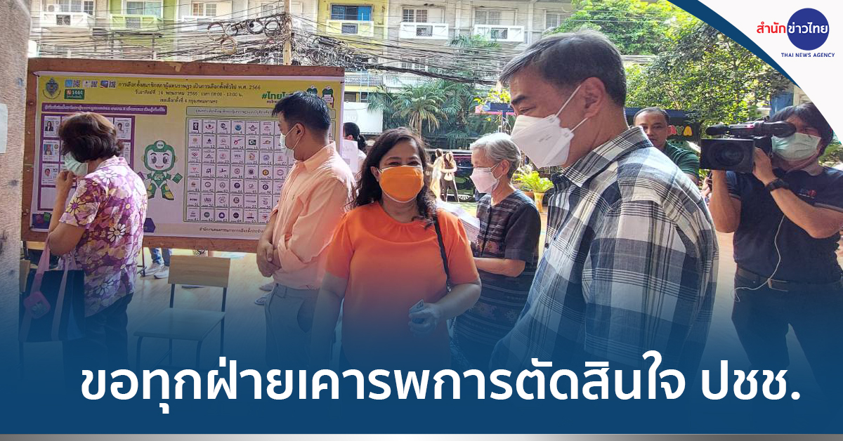 กรุงเทพมหานคร 14 พ.ค.-อภิสิทธิ์ ชวนคนไทยออกมาใช้สิทธิเลือกตั้ง คาดช่วงบ่ายคนน่าจะมาเยอะกว่านี้ รอลุ้นผลคะแนนที่บ้าน ขอทุกฝ่ายเคารพการตัดสินใจของประชาชน
