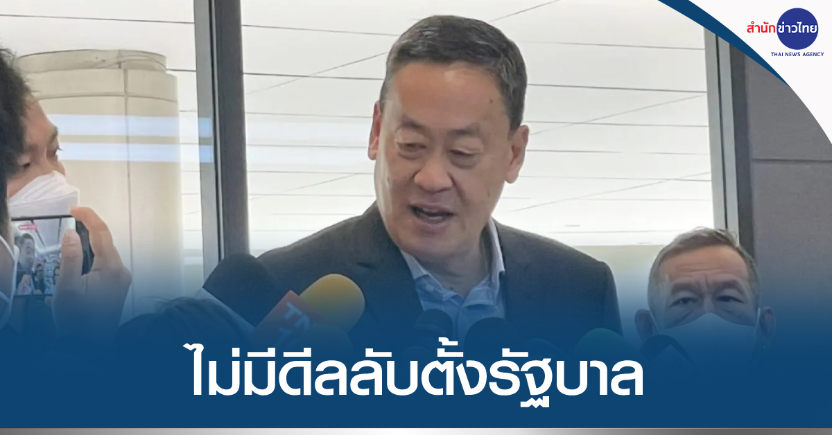 ระหว่างเดินเข้าลิฟต์ นายเศรษฐา กล่าวว่า ช่วงเย็นวันนี้ (15 พ.ค.) จะไปเตะบอล และวันนี้ นายประเสริฐ จันทรรวงทอง เลขาธิการพรรค เรียกเข้าพรรค อย่างไรก็ตาม หลังจากเมื่อคืนที่ผ่านมายังไม่ได้พูดคุยกับ น.ส.แพทองธาร ชินวัตร แคนดิเดตนายกรัฐมนตรีพรรคเพื่อไทย และไม่ทราบเรื่องที่นายพิธา ลิ้มเจริญรัตน์ หัวหน้าพรรคก้าวไกล ส่งข้อความไปคุยกับ น.ส.แพทองธาร เรื่องดีลจัดตั้งรัฐบาล ขณะเดียวกันไม่ได้คุยกับนายพิธา เพราะไม่มีเบอร์โทรศัพท์ และว่า “ผมไม่มีดีลส่วนตัวหรือดีลลับอะไรในการตั้งรัฐบาล”.-สำนักข่าวไทย