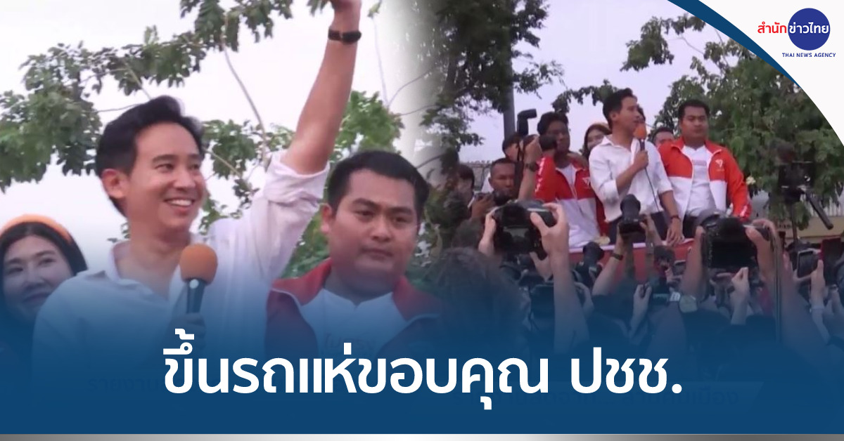 “พิธา” ขึ้นรถแห่ขอบคุณประชาชน