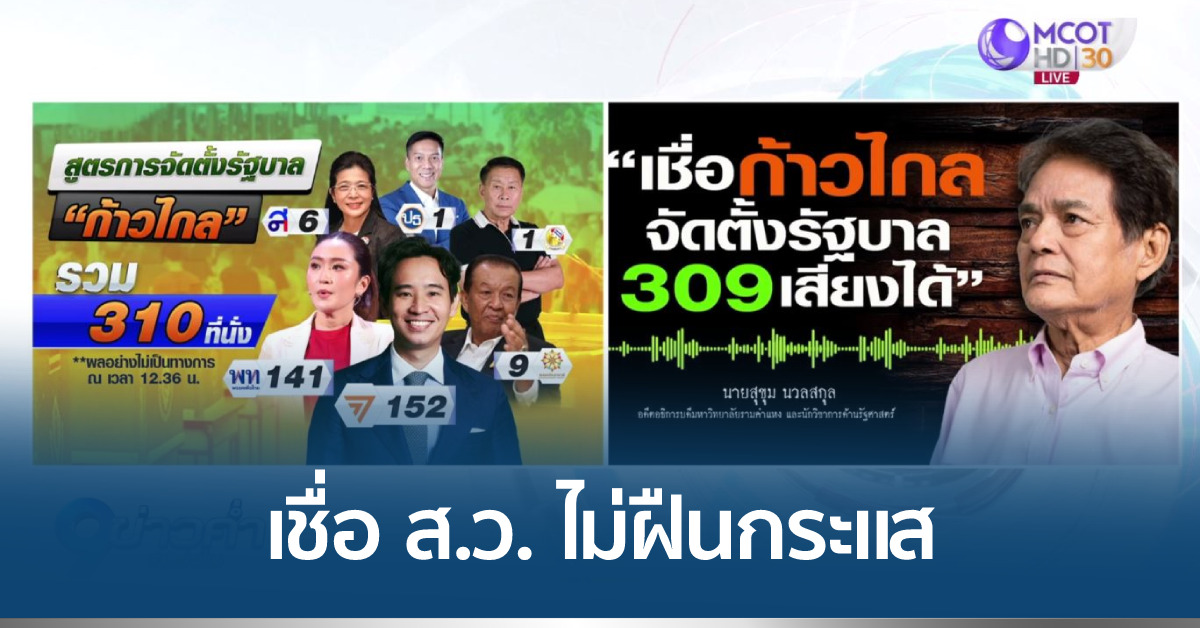 นายสุขุม นวลสกุล อดีตอธิการบดีมหาวิทยาลัยรามคำแหง และนักวิชาการด้านรัฐศาสตร์ กล่าวถึงกรณีที่พรรคก้าวไกล เตรียมจัดตั้งรัฐบาล 309 เสียง จาก 5 พรรค ว่าหากรวมกันได้เช่นนี้ ก็ถือว่าการจัดตั้งรัฐบาลเป็นไปด้วยความเรียบร้อยดี เพราะถือว่าได้เสียง ส.ส. รวมกันแล้ว แลนด์สไลด์ขนาดนี้ ส.ว. ที่มีส่วนในการโหวตเลือกนายกรัฐมนตรีก็ต้องพิจารณา เบื้องต้นจะวัดกันตอนที่เลือกประธานสภาผู้แทนราษฎร แต่สิ่งที่น่ากลัว คือ เกรงว่าจะมีใครไปยุพรรคเพื่อไทยให้ตั้งรัฐบาลแข่ง หากพรรคเพื่อไทยทำเช่นนี้จะเป็นการฝืนกระแสที่เลือกพรรคเพื่อไทยมา เพราะจะต้องไปรวมกับอีกฟากหนึ่ง ซึ่งหากพรรคเพื่อไทยเล่นการเมืองแบบคิดแต่ตัวเลข โดยไม่คิดถึงกระแสข้างนอกก็จะทำให้เสียมวลชนที่สนับสนุนพรรคไป
