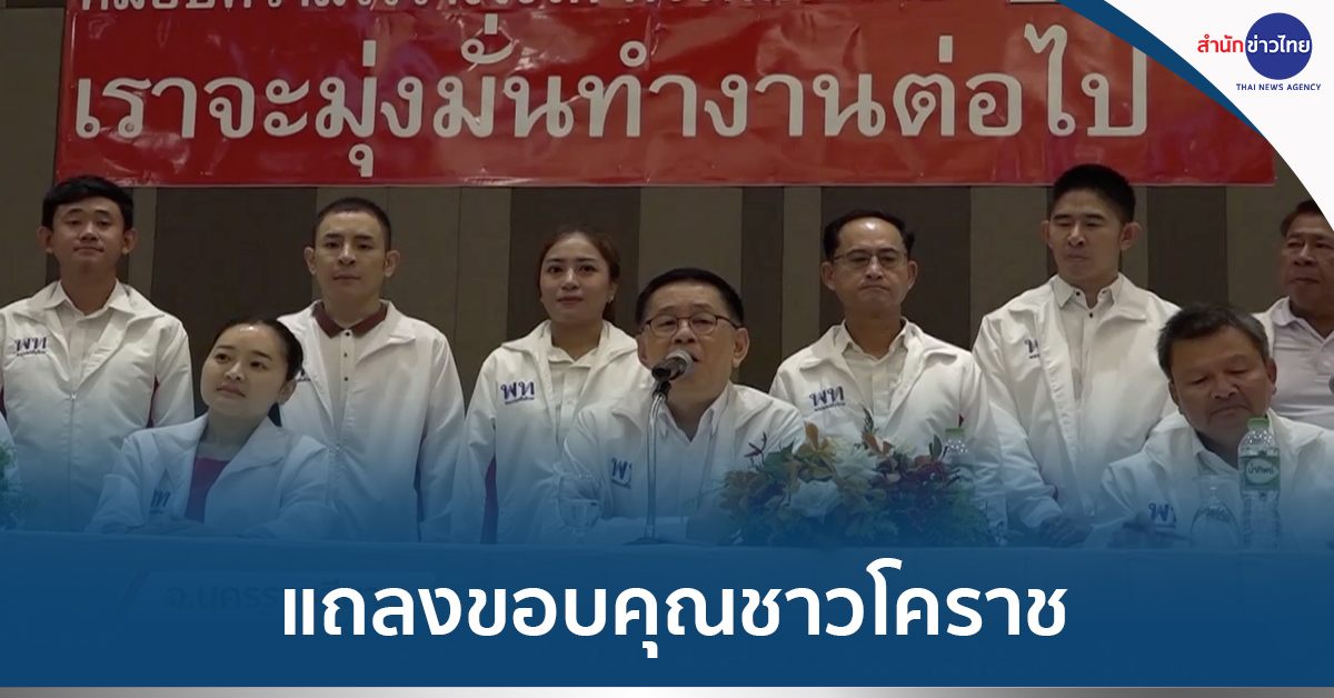 นครราชสีมา 17 พ.ค.-เลขาธิการพรรคเพื่อไทย แถลงขอบคุณ ชาวนครราชสีมา ที่ให้ความไว้วางใจ จนชนะการเลือกตั้งถึง 12 เขต ยันพร้อมทำงานร่วมกับพรรคก้าวไกล
