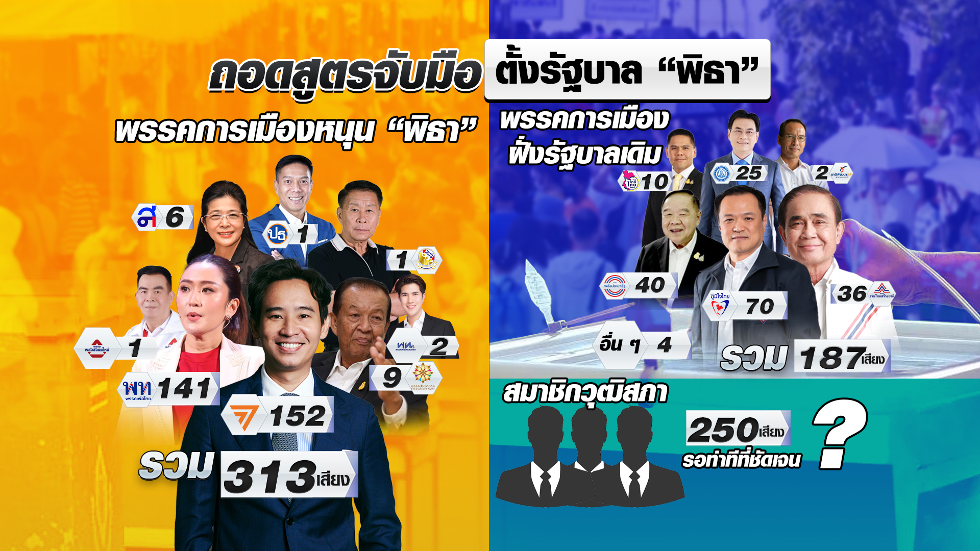 กรุงเทพฯ 18 พ.ค. – “พิธา” เผยล่าสุดมีอีก 2 พรรค จับมือร่วมจัดตั้งรัฐบาล คือ พรรคพลังสังคมใหม่ ซึ่งมี 1 เสียง และพรรคเพื่อไทรวมพลัง ที่มี 2 เสียง ทำให้ขณะนี้พรรคก้าวไกลมีเพิ่มเป็น 313 เสียง จากเดิมที่มี 310 เสียง