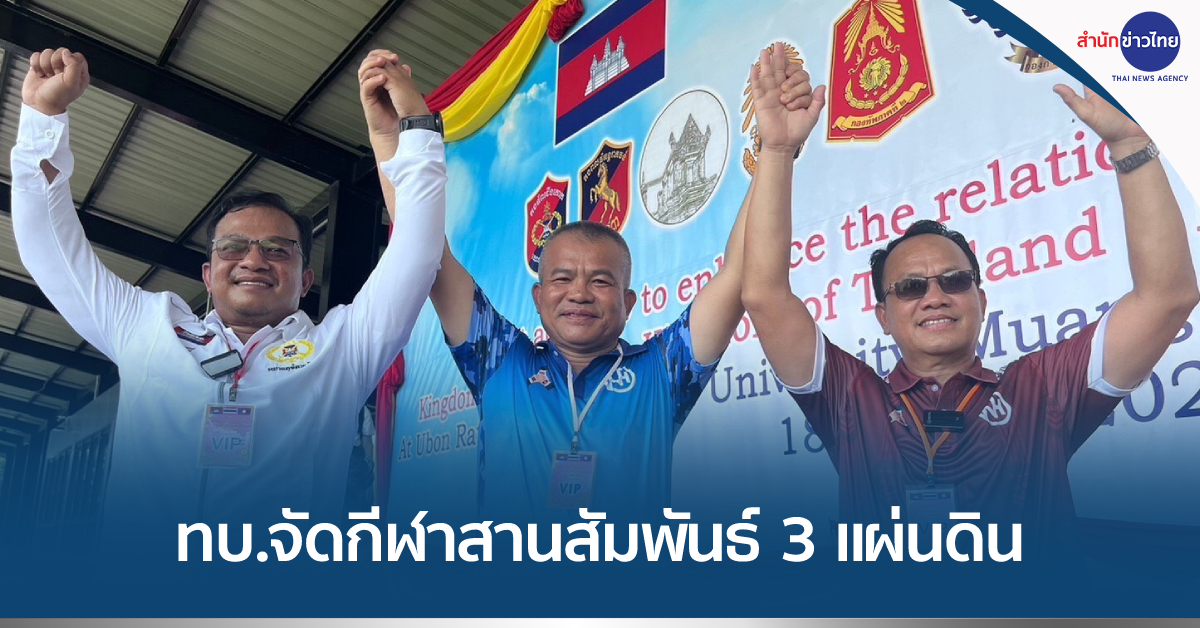 พล.ต. (หญิง) ศิริจันทร์ งาทอง รองโฆษกกองทัพบก เปิดเผยว่า กองทัพบกดำรงนโยบายสานสัมพันธ์มิตรประเทศอย่างต่อเนื่อง โดยเฉพาะความร่วมมือตามแนวชายแดน และพัฒนาความเป็นอยู่ของประชาชนในพื้นที่ ล่าสุดกองทัพบกโดยกองทัพภาคที่ 2, ภูมิภาคทหารที่ 4 กองทัพบกกัมพูชา, แขวงจำปาสัก สปป ลาว และส่วนราชการพลเรือนจังหวัดอุบลราชธานี จัดกิจกรรมสร้างสัมพันธ์ 3 แผ่นดินในพื้นที่ชายแดน ในจังหวัดอุบลราชธานี จัดการแข่งขันกีฬาเชื่อมความสัมพันธ์ 3 ประเทศ ณ มหาวิทยาลัยราชภัฏอุบลราชธานี ในกีฬา 4 ประเภทกีฬา ได้แก่ ฟุตบอล เปตอง วอลเลย์บอล และกอล์ฟ มีนักกีฬาเข้าร่วมการแข่งขัน 240 คน มาจากกัมพูชา 60 คน สปป ลาว 60 คน และไทย 120 คน