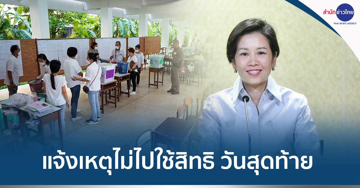ทำเนียบ 21 พ.ค. – รองโฆษกรัฐบาล ย้ำผู้มีสิทธิเลือกตั้ง ที่มีเหตุจำเป็นที่ไม่อาจไปใช้สิทธิเลือกตั้ง ส.ส. รีบแจ้งเหตุที่ไม่อาจไปใช้สิทธิเลือกตั้ง วันนี้ (21 พ.ค.66) วันสุดท้าย