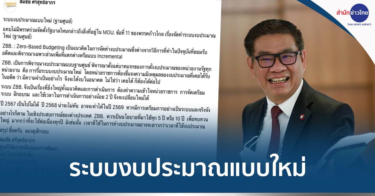 นายสมชัย ศรีสุทธิยากร ผู้อำนวยการศูนย์วิจัยการเมืองและการพัฒนา มหาวิทยาลัยรังสิต โพสต์เฟซบุ๊ก ถึงเรื่อง MOU ของพรรคร่วมรัฐบาลก้าวไกล ว่า แทบไม่มีพรรคร่วมจัดตั้งรัฐบาลไหนกล่าวถึงสิ่งที่อยู่ใน MOU ข้อที่ 11 ของพรรคก้าวไกล เรื่องจัดทำระบบงบประมาณใหม่ (ฐานศูนย์) ZBB. : Zero-Based Budgeting เป็นแนวคิดในการจัดทำงบประมาณ ซึ่งต่างจากวิธีการที่ทำในปัจจุบัน ที่ยอมรับอดีตและพิจารณาเฉพาะส่วนเพิ่มที่แตกต่างหรือแบบ Incremental