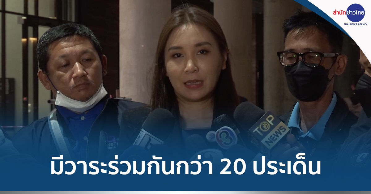 กทม. 22 พ.ค.- “ศิริกัญญา” รองหัวหน้าพรรคก้าวไกล เผย MOU ของ 8 พรรคที่จะร่วมกันจัดตั้งรัฐบาล มีวาระร่วมกันกว่า 20 ประเด็น ส่วนการพูดคุยกับ ส.ว. มีแนวโน้มสัญญาณบวก
