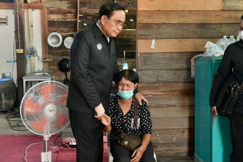 จากนั้น นายกรัฐมนตรีและคณะเดินทางไปเยี่ยมบ้านครอบครัวของผู้เสียขีวิต ณ บ้านเลขที่ 5 และบ้านเลขที่ 116/5 หมู่ที่ 18 ตําบลเนินปอ อําเภอสามง่าม จังหวัดพิจิตร และได้เข้าเคารพศพผู้เสียชีวิตจากเหตุการณ์ดังกล่าว โอกาสนี้นายกรัฐมนตรีเยี่ยมบ้านเรือนและทักทายประชาชนที่ได้รับความเสียหายจากสถานการณ์วาตภัยในบริเวณใกล้เคียงด้วย