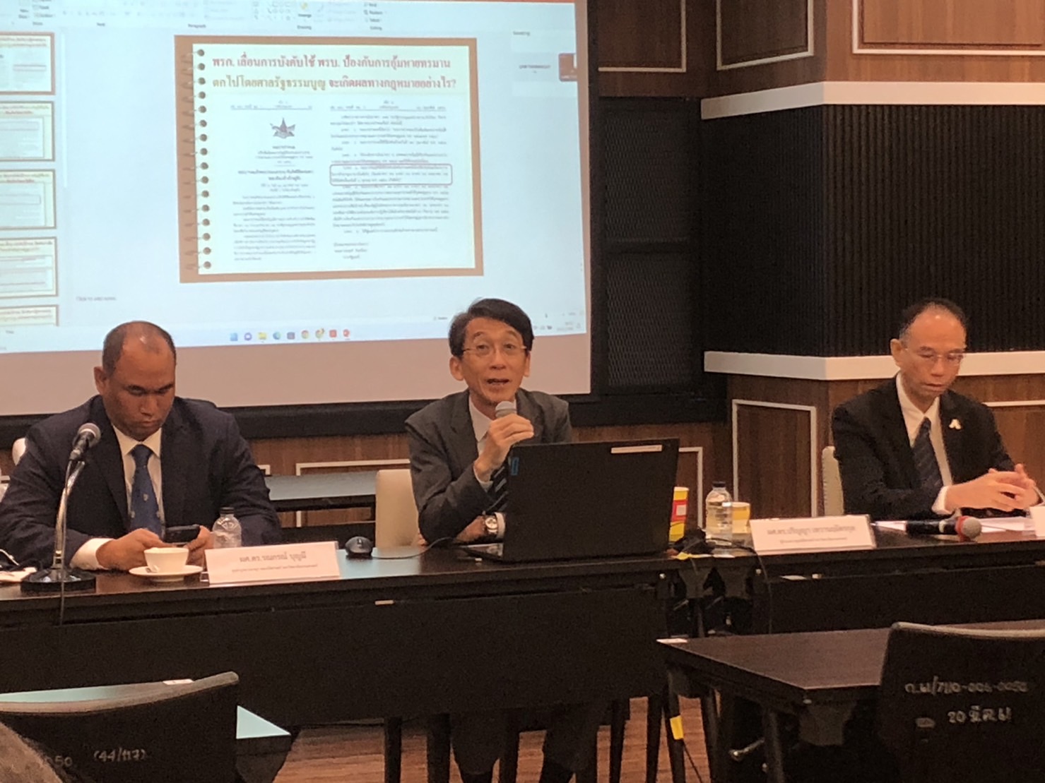 ผู้สื่อข่าวรายงานว่า ศูนย์นิติศาสตร์ มหาวิทยาลัยธรรมศาสตร์ จัดเสวนา “พระราชกำหนดเลื่อนการบังคับใช้ พ.ร.บ.ป้องกันการอุ้มหายทรมาน ไม่ชอบด้วยรัฐธรรมนูญมีผลอย่างไร และใครบ้างที่ต้องรับผิดชอบ” โดยมีนายปริญญา เทวานฤมิตรกุล ผู้อำนวยการศูนย์นิติศาสตร์ นายรณกรณ์ บุญมี ศูนย์กฎหมายอาญาคณะนิติศาสตร์ มหาวิทยาลัยธรรมศาสตร์ และนายสุรพงษ์ กองจันทึก ประธาน มูลนิธิผสานวัฒนธรรม ร่วมเสวนา
